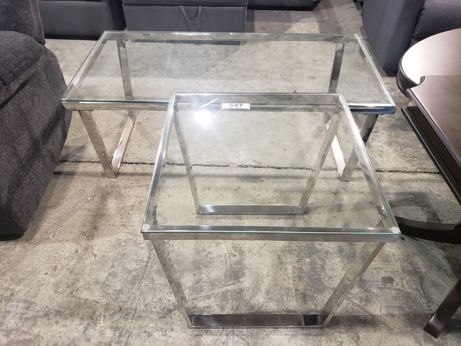 2 PIECE GLASS TOP COFFEE TABLE SET