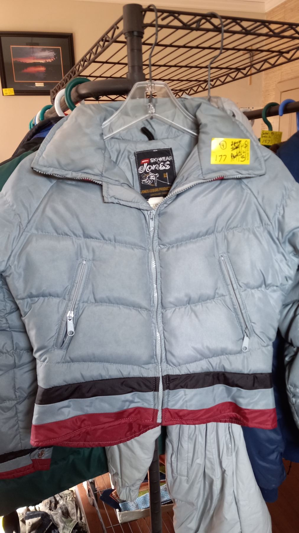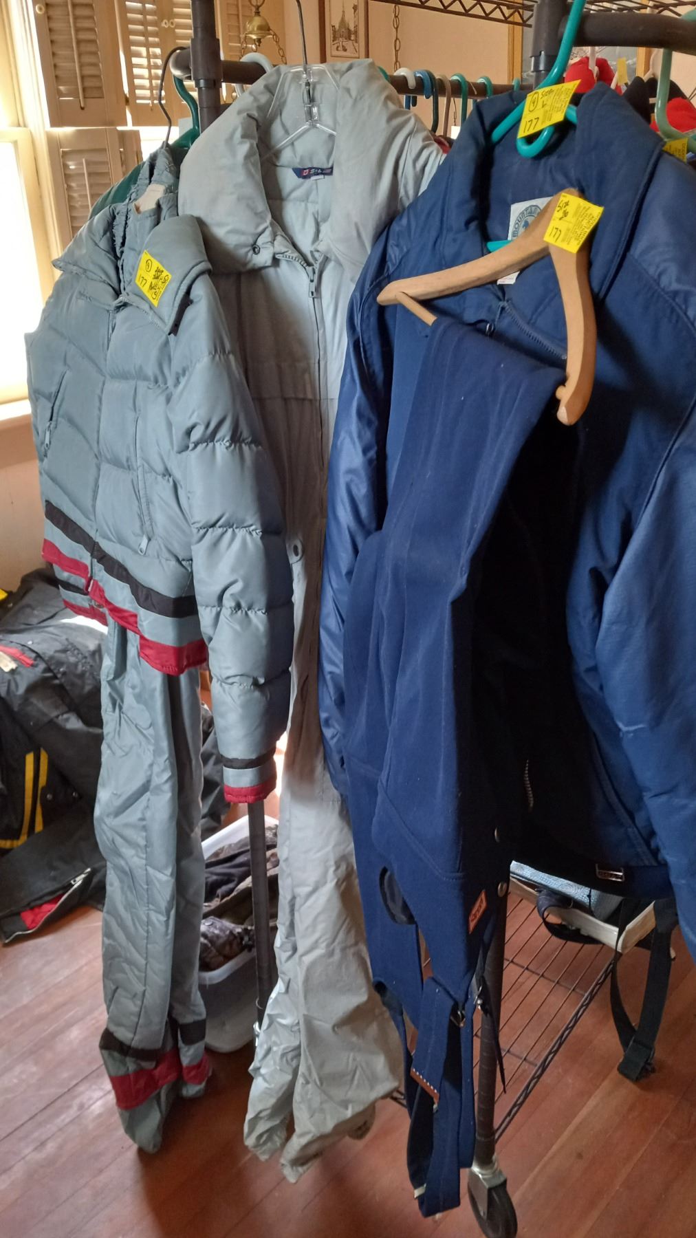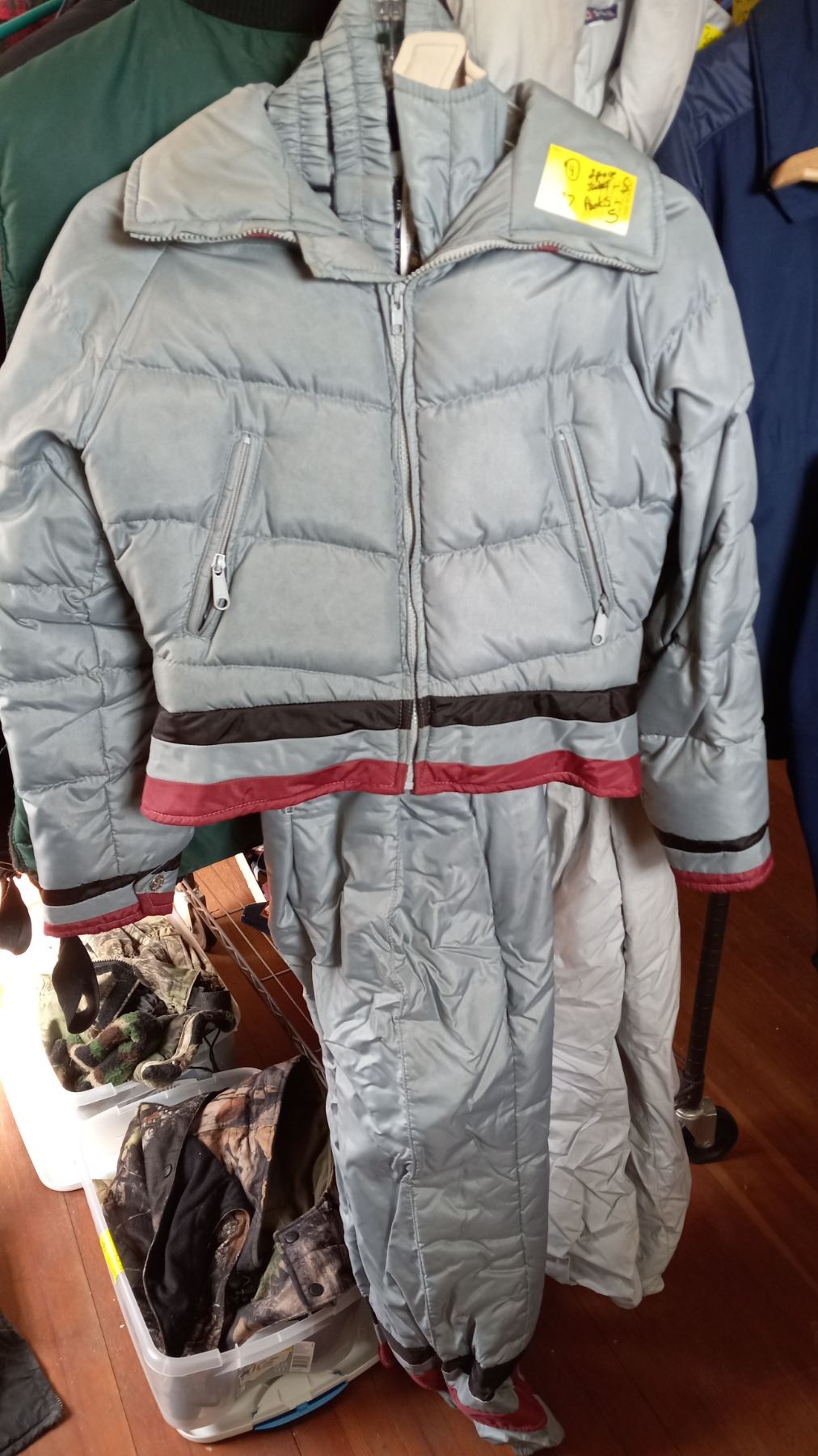 2 PIECE JACKET & PANT SET, A 1 PIECE SNOWSUIT & A BLUE JACKET, SZ L & PANTS, SZ 26