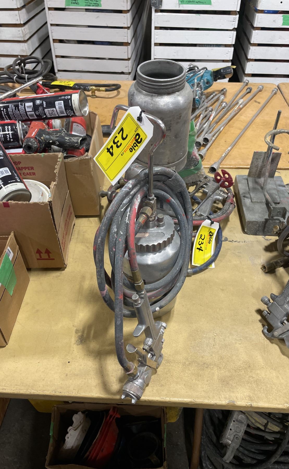 2 PNEUMATIC HAND HELD PAINT SPRAYER GUNS WITH PAINT POTS & STAND