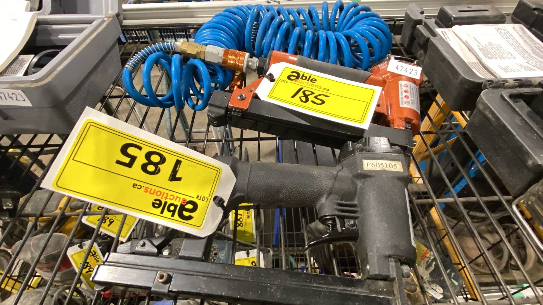 2 PNEUMATIC STAPLE GUNS, 1 WITH HOSE