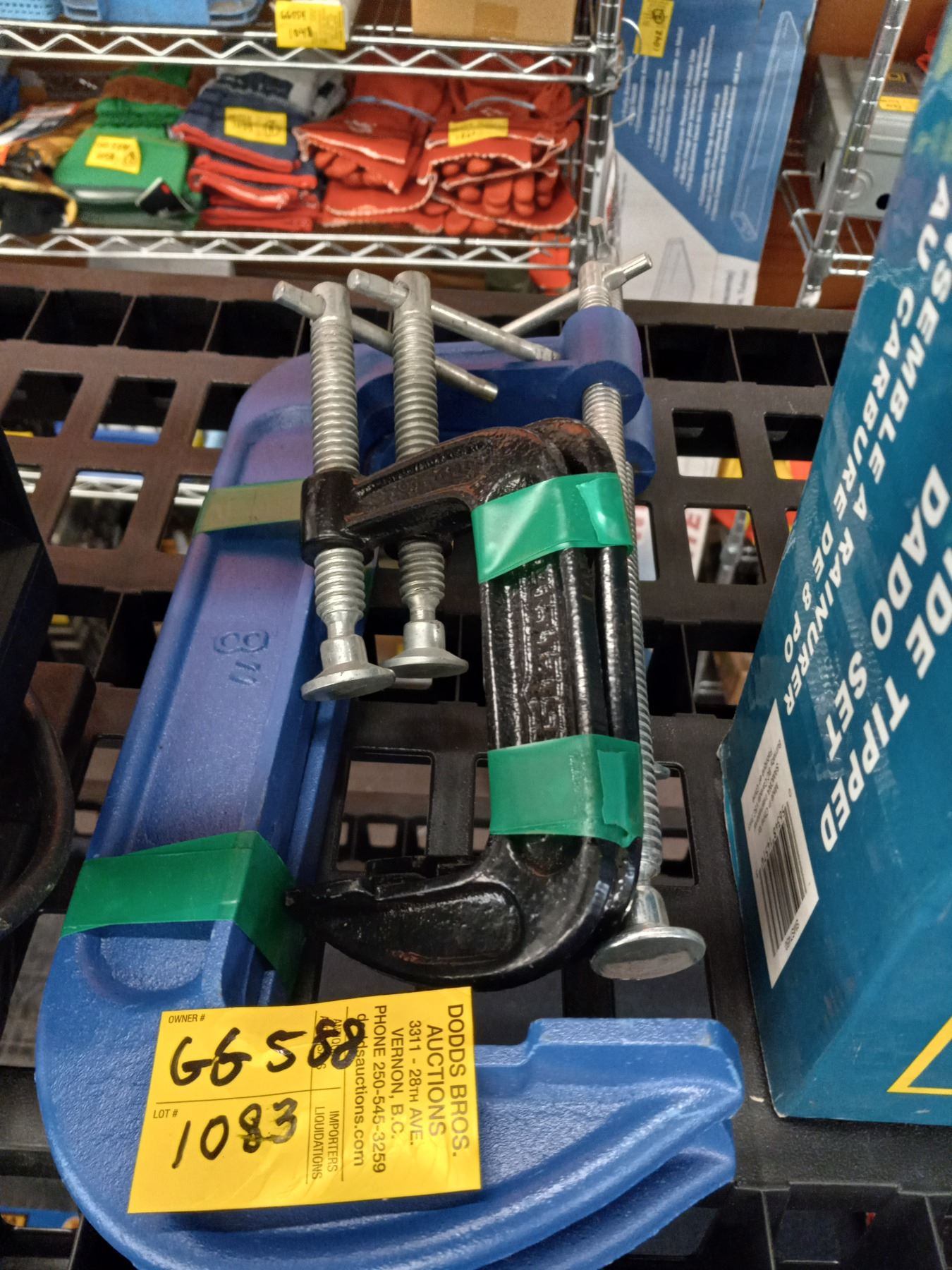2 POWERFIST 8" C CLAMPS AND 2 MASTERCRAFT 3" C CLAMPS