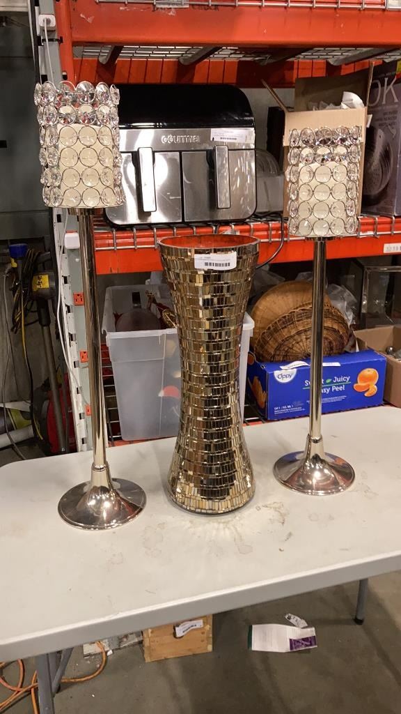 2 PRISM LED CANDLE ON STAND WITH MOSAIC VASE