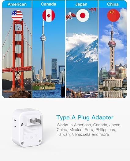 - 2 Pack US to Japan Plug Adapter, Japan Power Travel Adpter with 4 Outlets 4 USB Ports(2 USB C), Type A Plug Adapter for Amercian USA to China Japanese Canada Mexico Philippines Travel Essentials