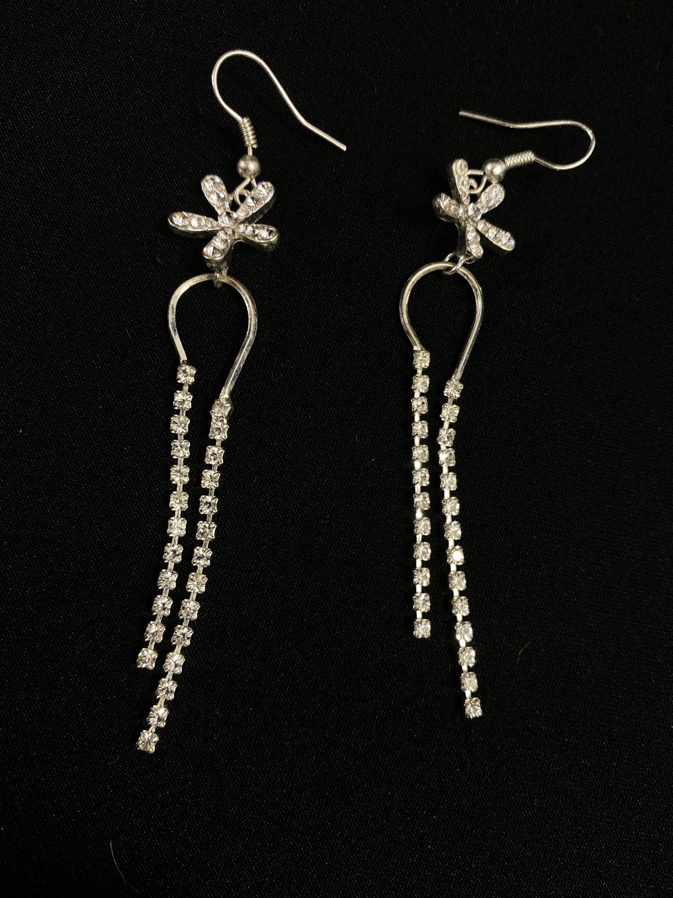 2 Pairs Of Long Rhinestone Earrings (1 Pair 3" Long)
