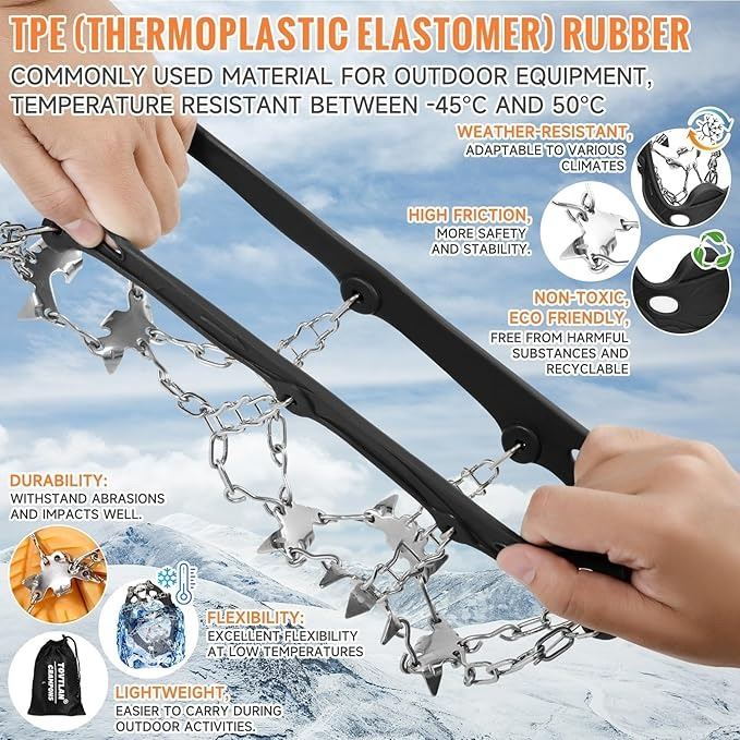 - tovtlan crampons for shoes, ice cleats for shoes and boots, 19 stainless steel spikes, snow grips for winter outdoor hiking,fishing and walking