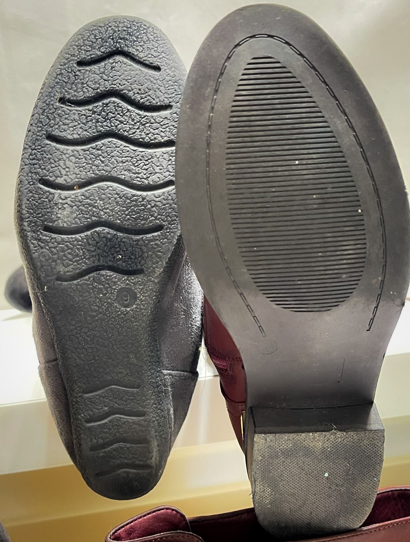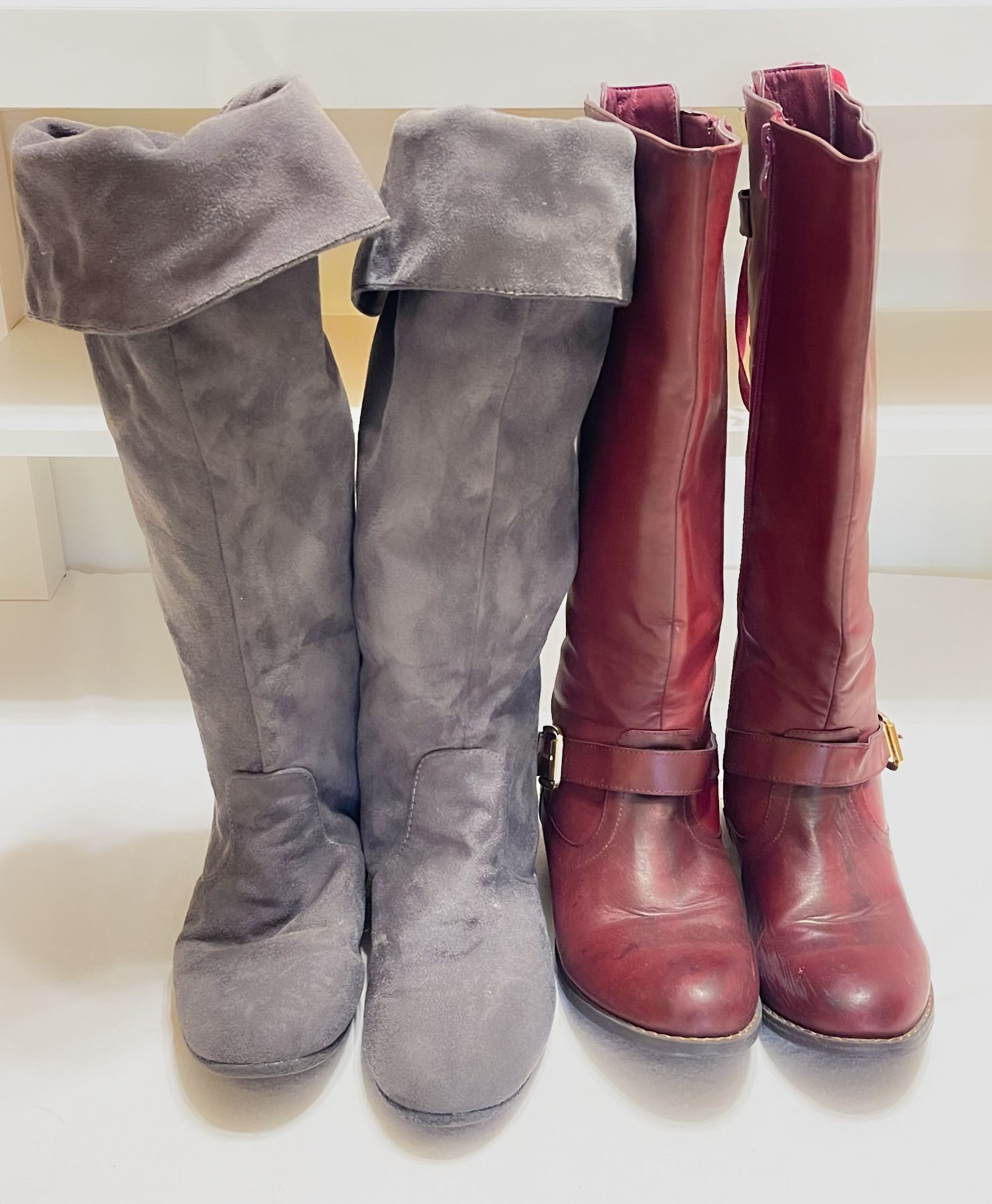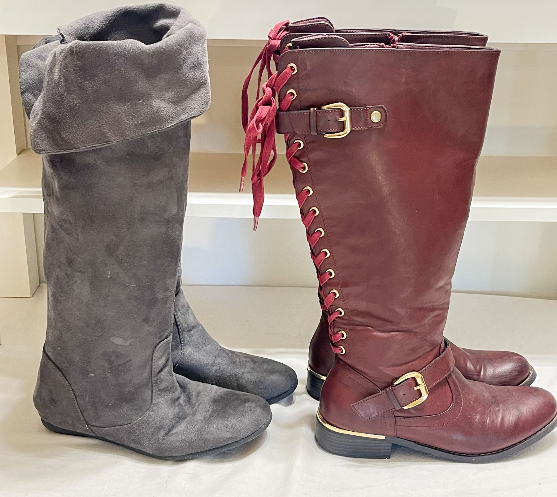 Lot includes two pairs of women’s knee-high boots, both size 9 with a comfortable wide-calf design. Both pair in good used condition.