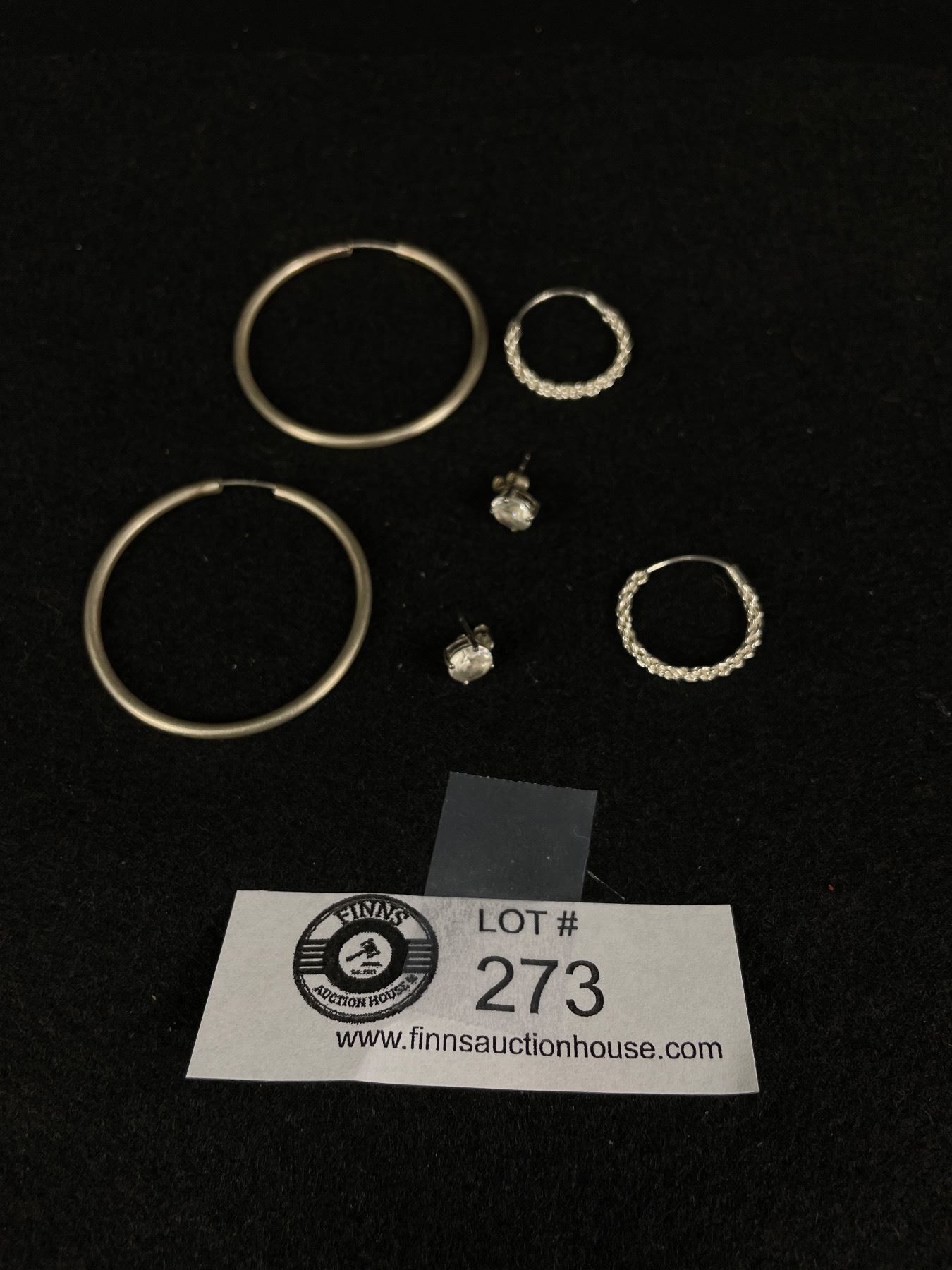 2 Pairs of 925 Hoop Earrings and 925 White Stud Earrings