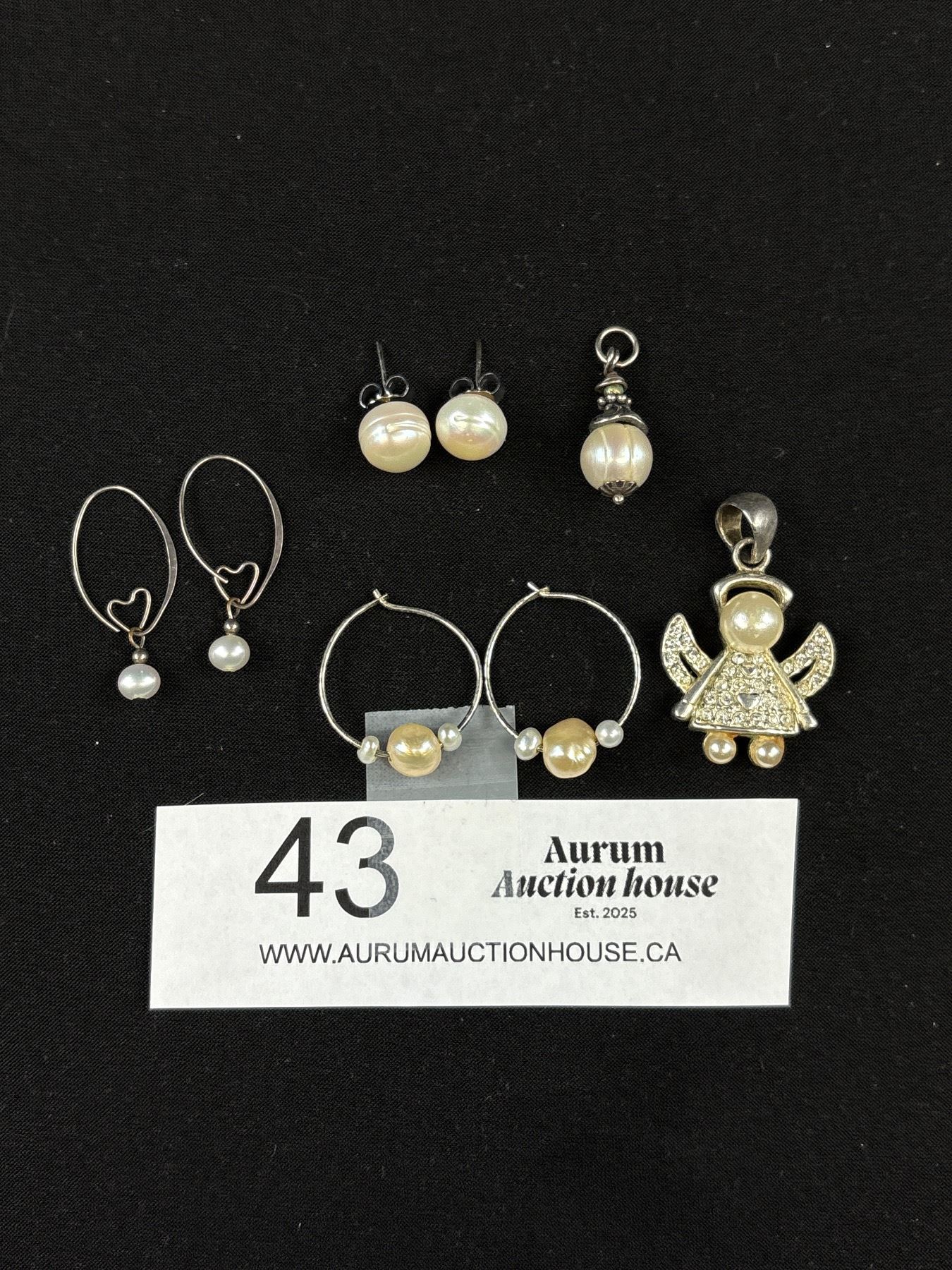 2 Pairs of Pearls Earrings + 2 Pearls Pendant