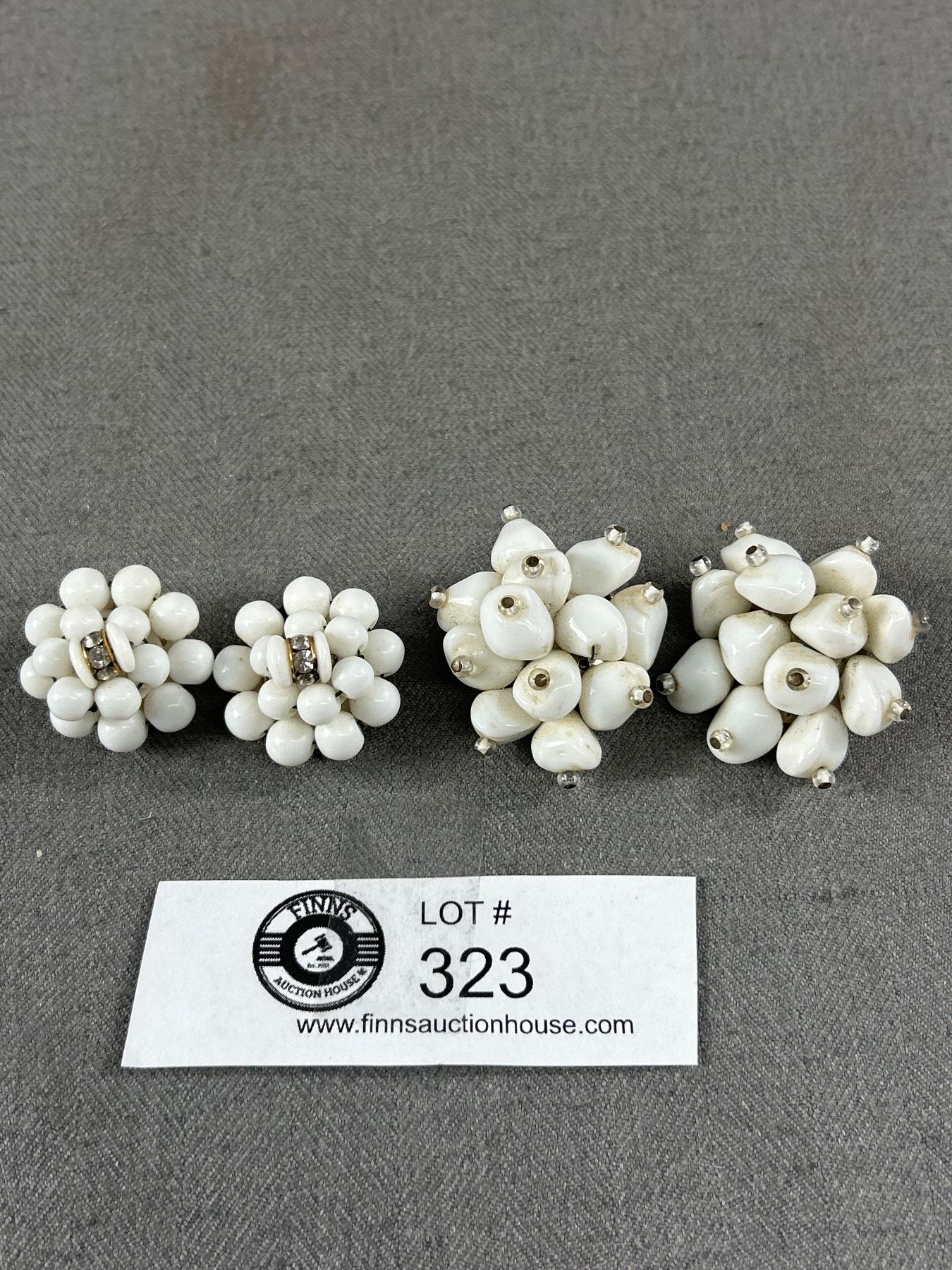 2 Pairs of Vintage 1950's Milk Glass Earrings