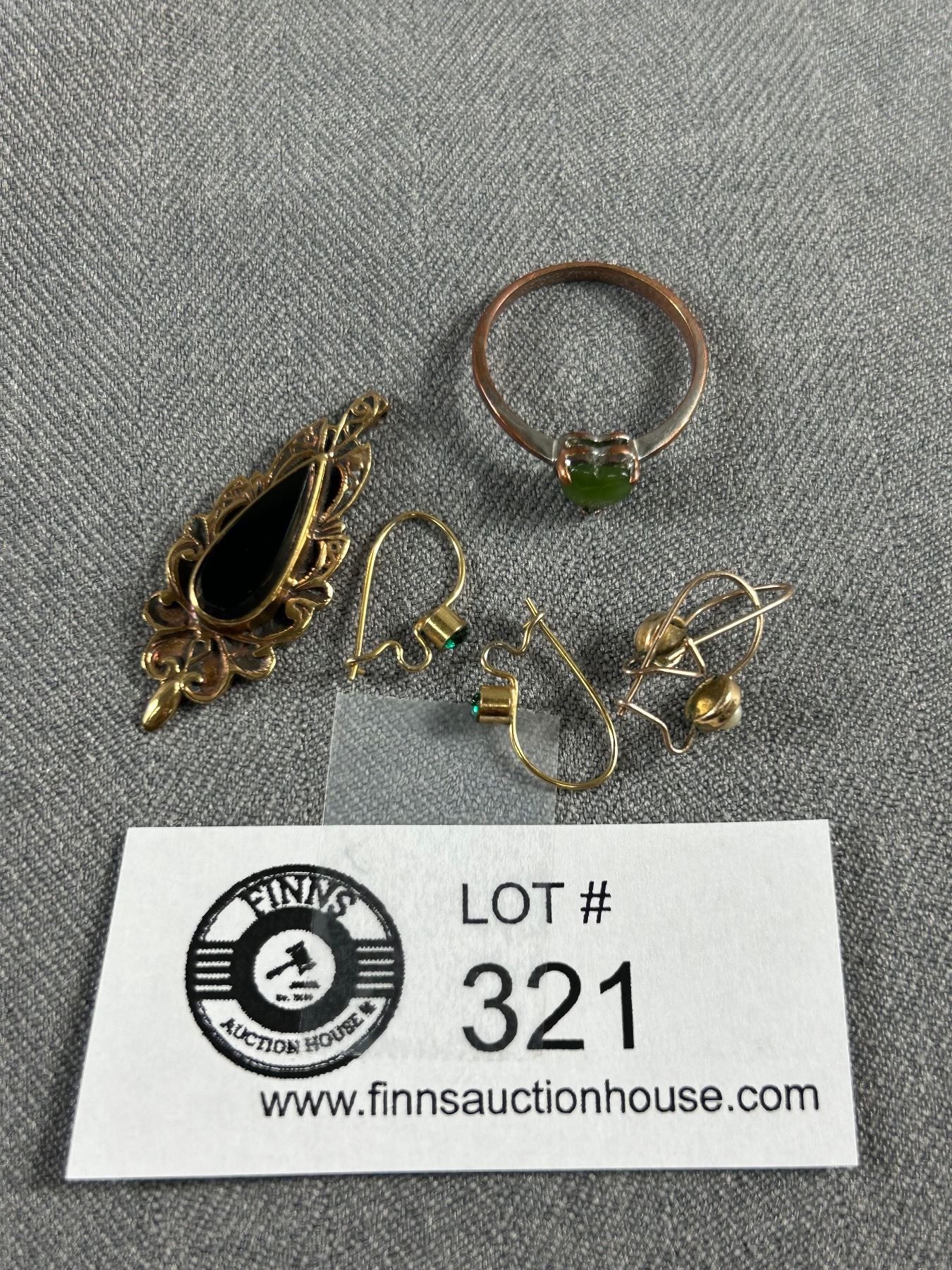 2 Pairs of Vintage Earrings, pendant w/ Black Onyx Stone + BC Jade Stone Ring