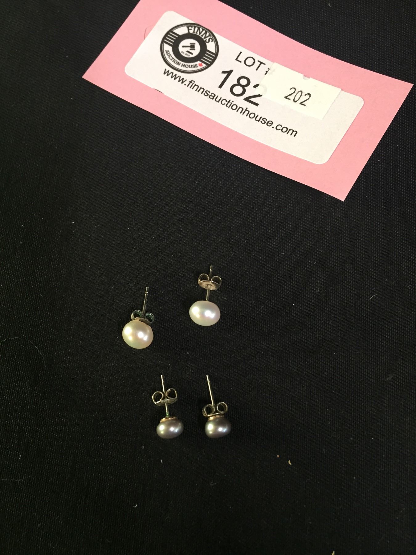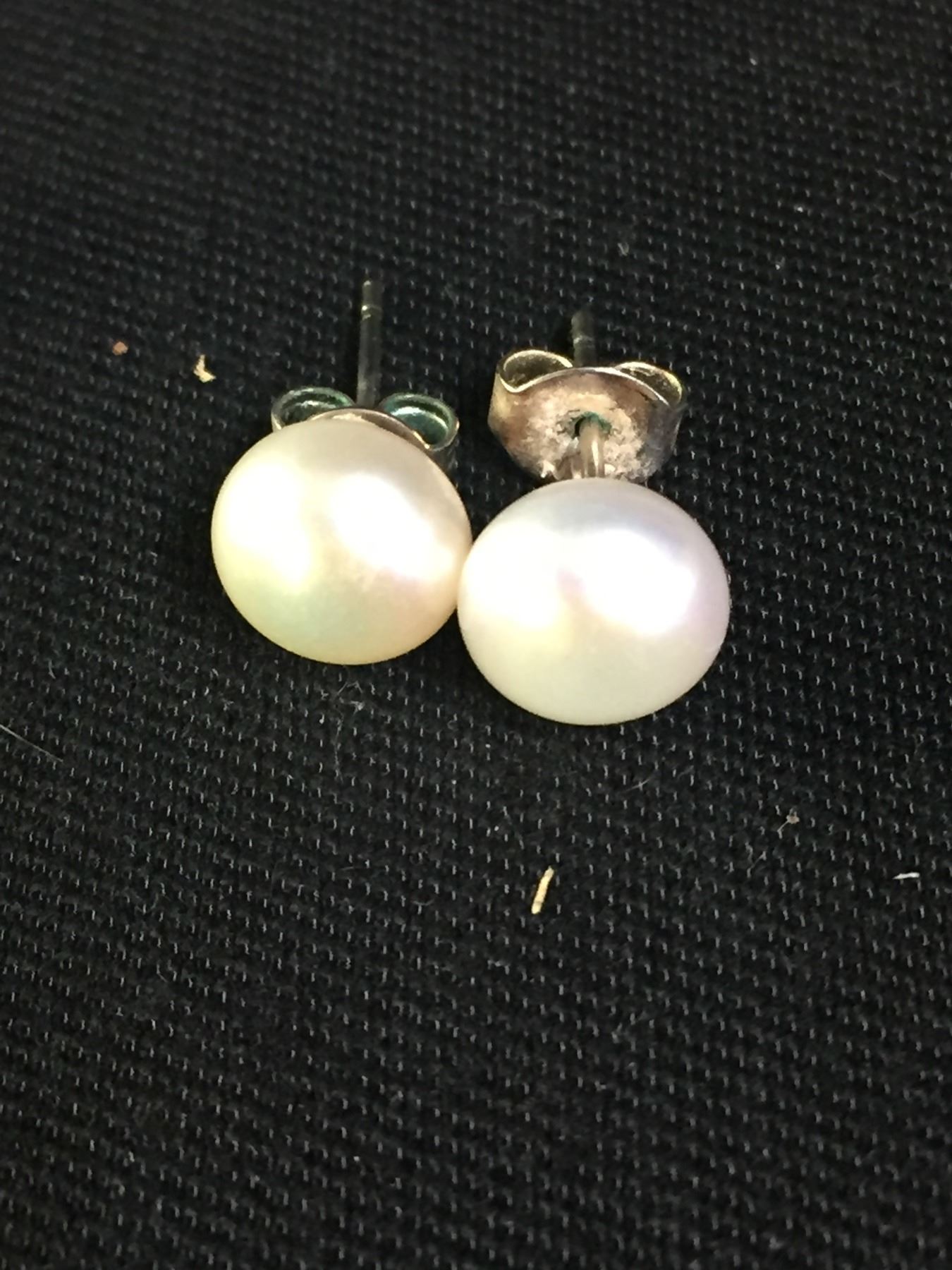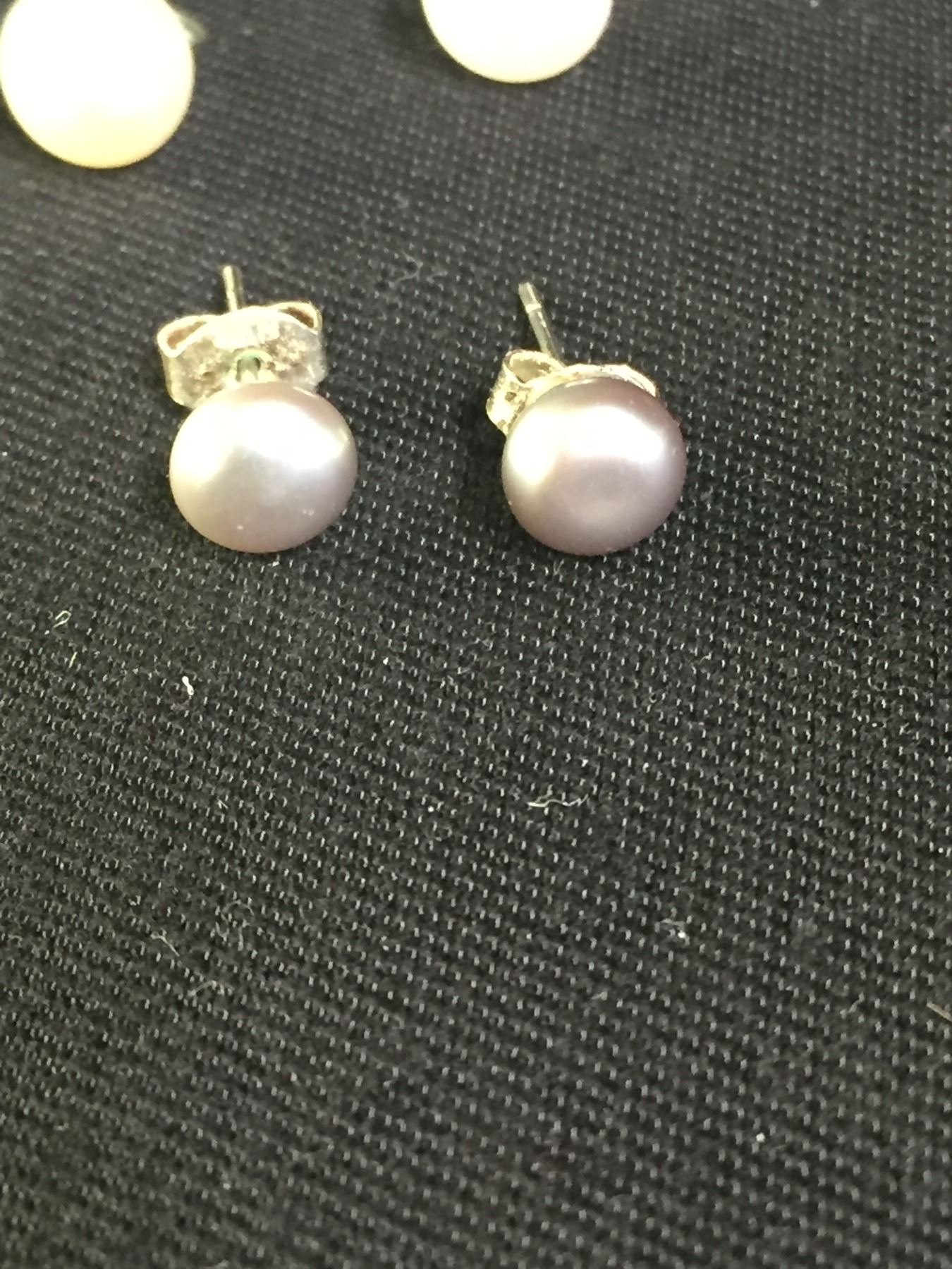 2 Pairs of Vintage Sterling Silver + Pearl Stud Earrings