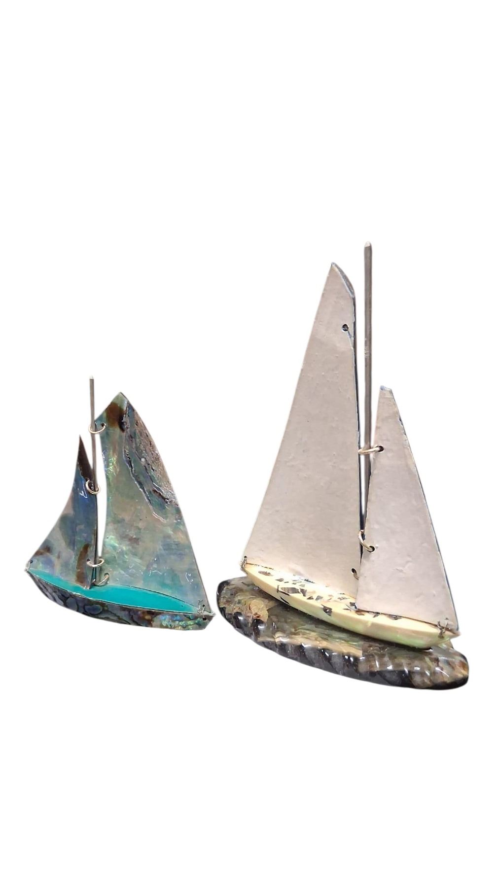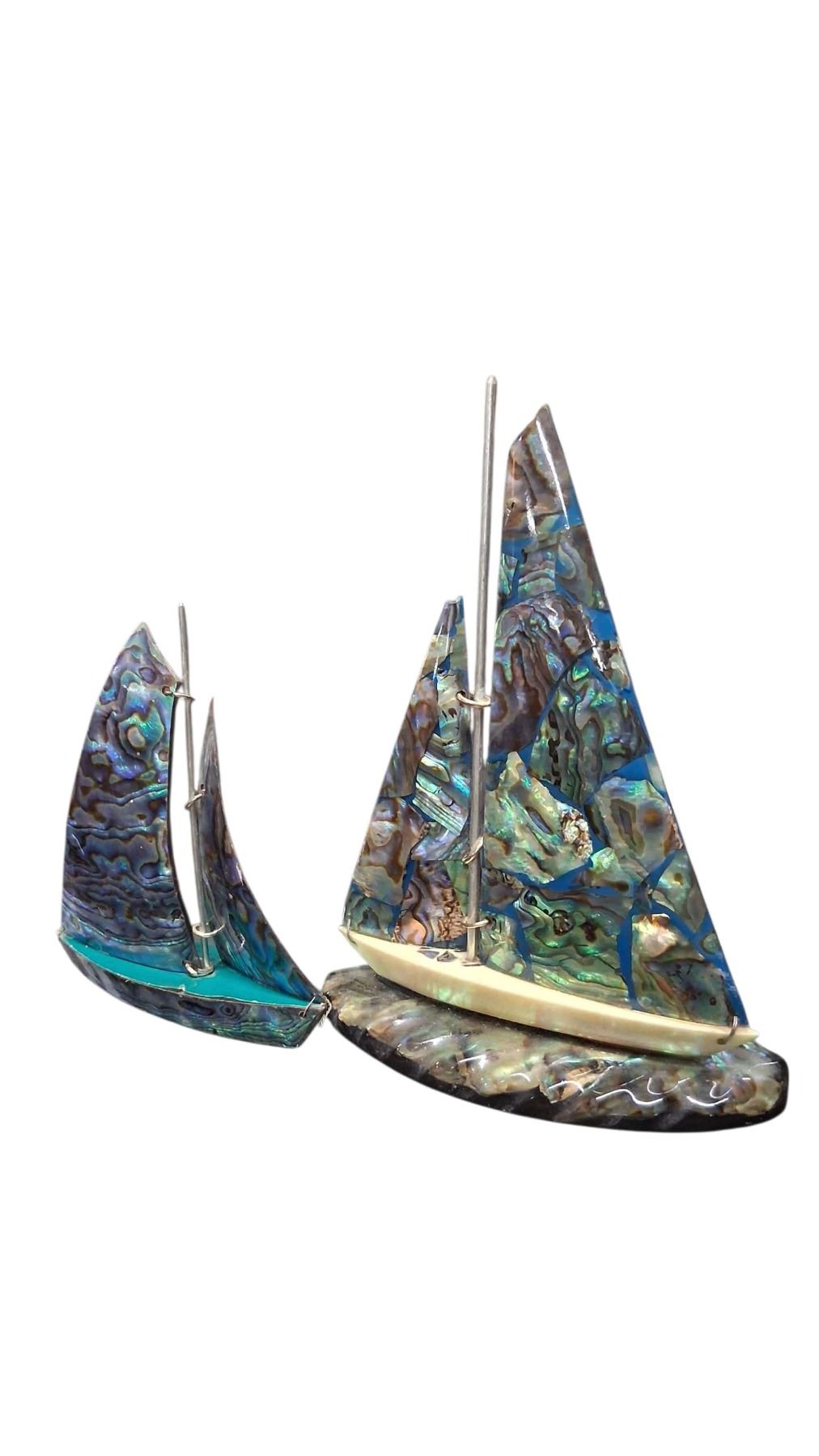 2 Paua shell sailboats 6" & 3"