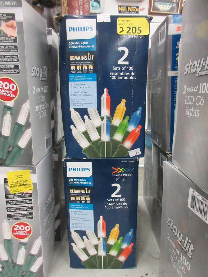 Each set has 2 strings with 100 bulbs each. Indoor/outdoor.