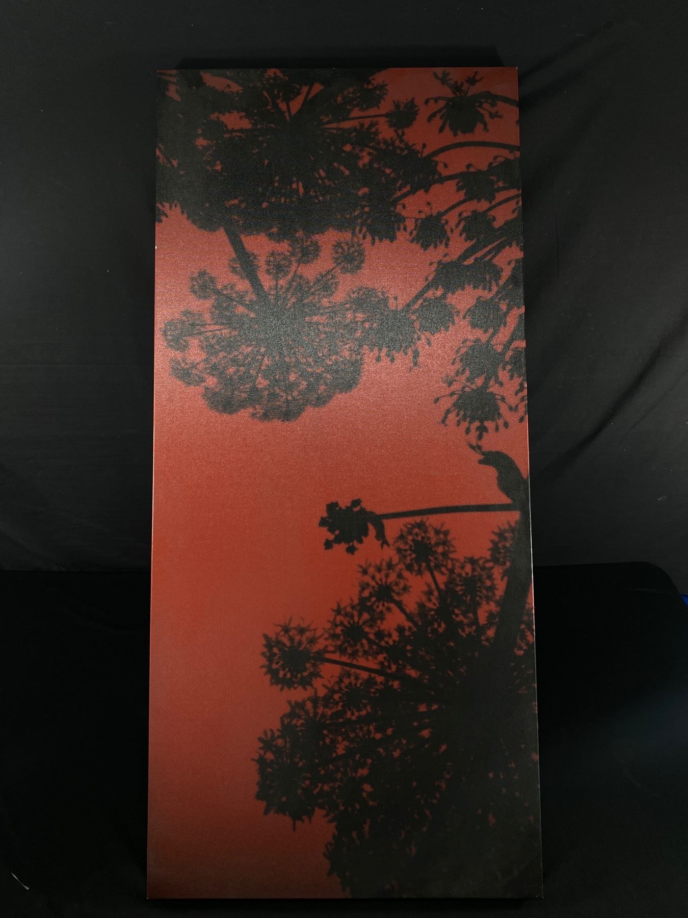 2 Pictures- Interesting Black Abstract Approx. 24" x 30" & Red/Black Queen Anne's Lace. Approx. 20" x 44"