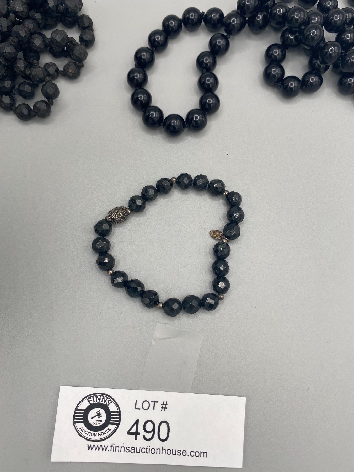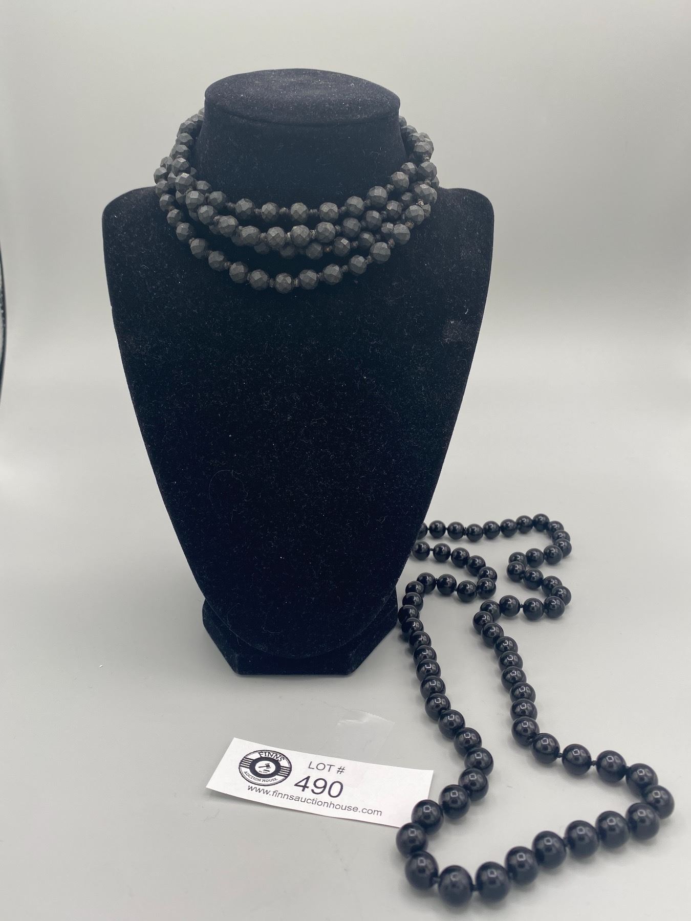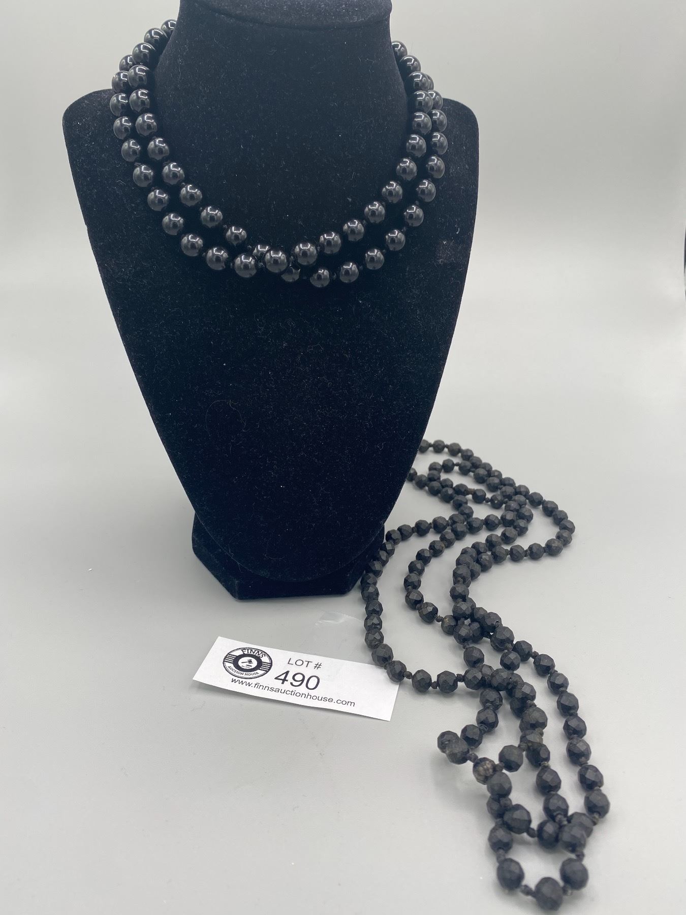 2 Piece Black Glass and Bog Oak Bead Necklace