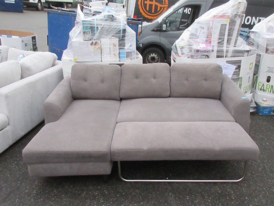 87" Total width x 55" deep. Coverts into a bed. Missing one leg.