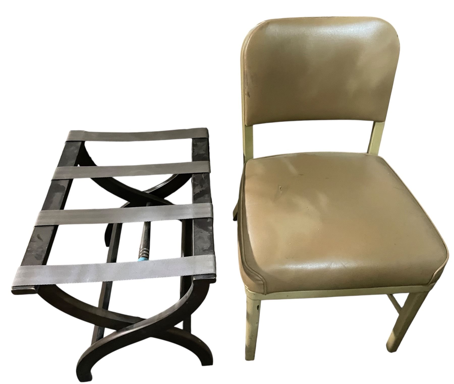 2-Piece Lot - Vintage Chair & Folding Luggage Rack
