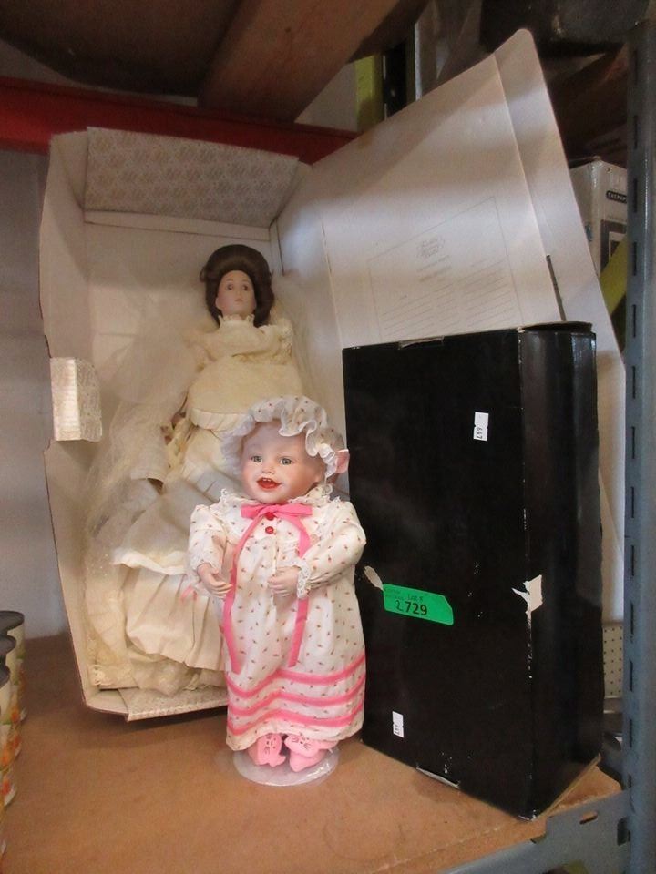 2 Porcelain Collector Dolls - Tallest is 22"