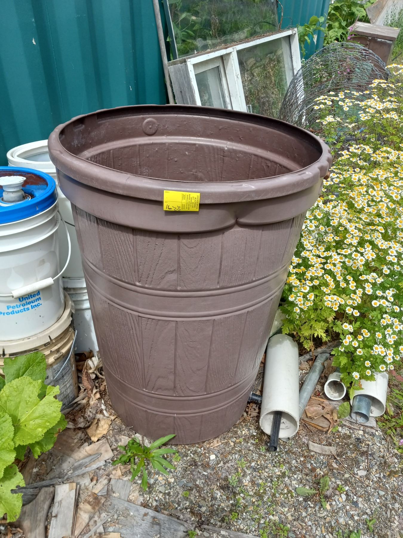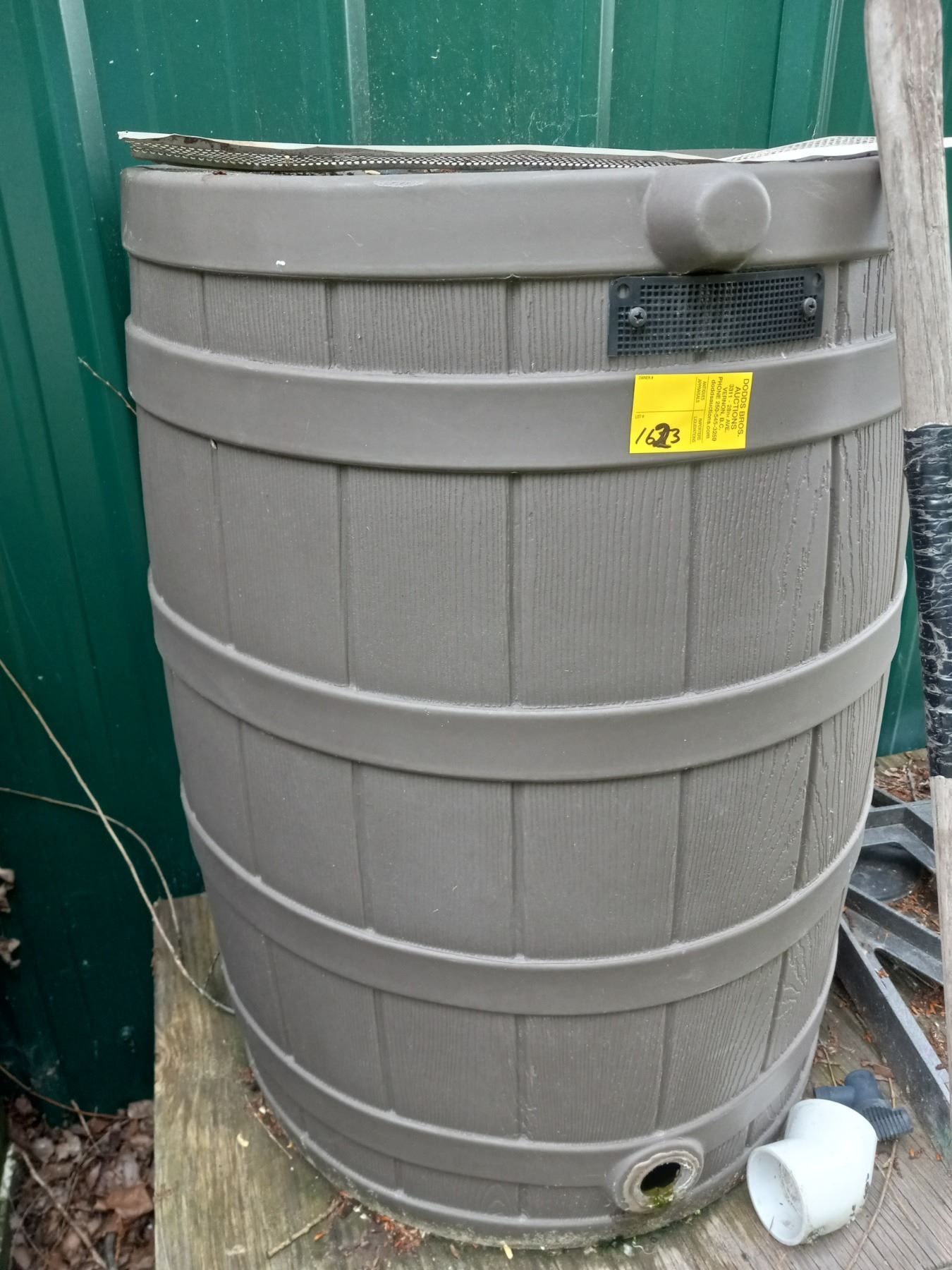 2 RAINBARREL STANDS & 2 RAIN BARRELS