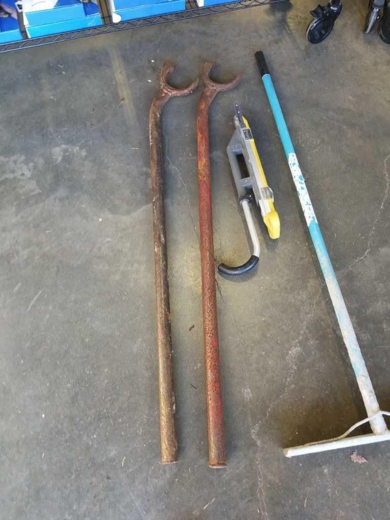 2 REBAR BENDERS 5FT EACH, AND WACKER NEUSON REBAR TYING TOOL