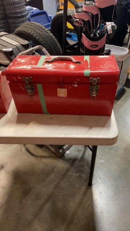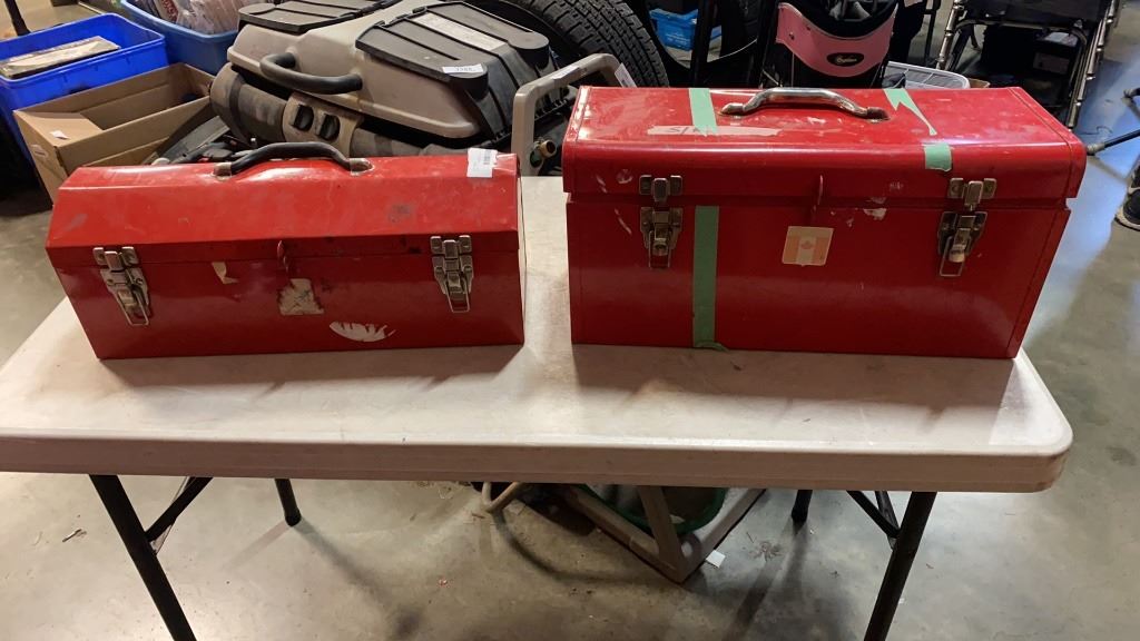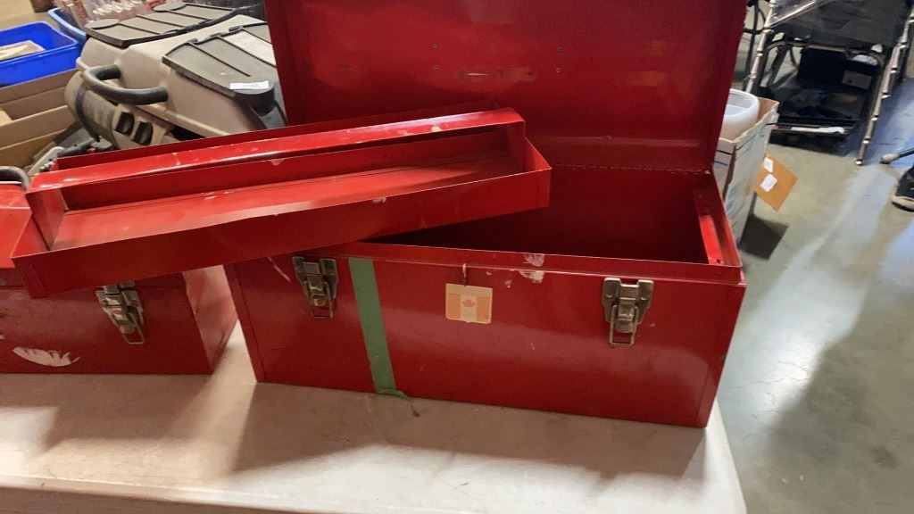 2 RED TOOLBOXES ONE WITH CONTENTS