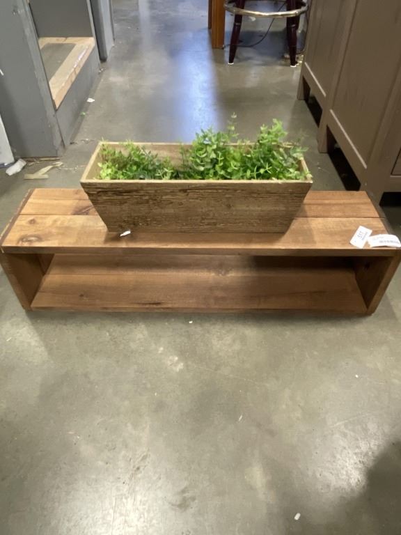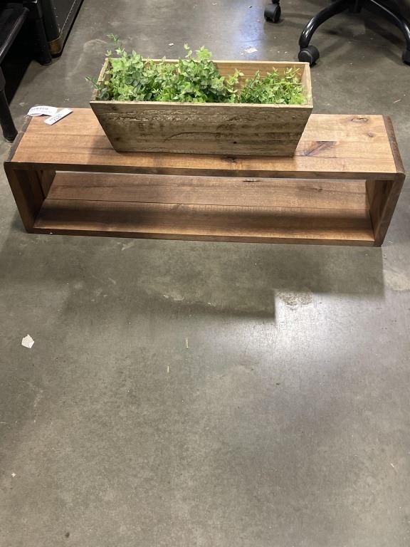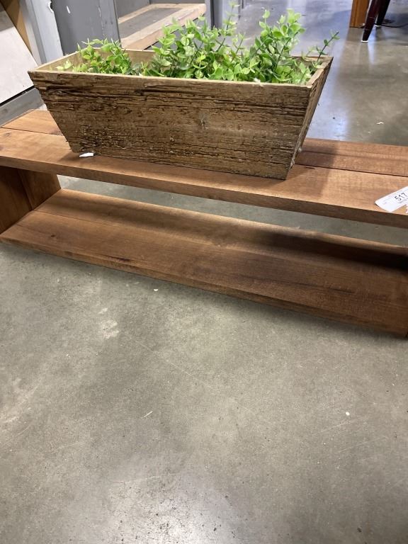 2 RUSTIC WALL SHEKLVES AND PLANTER WITH FAUX PLANTS
