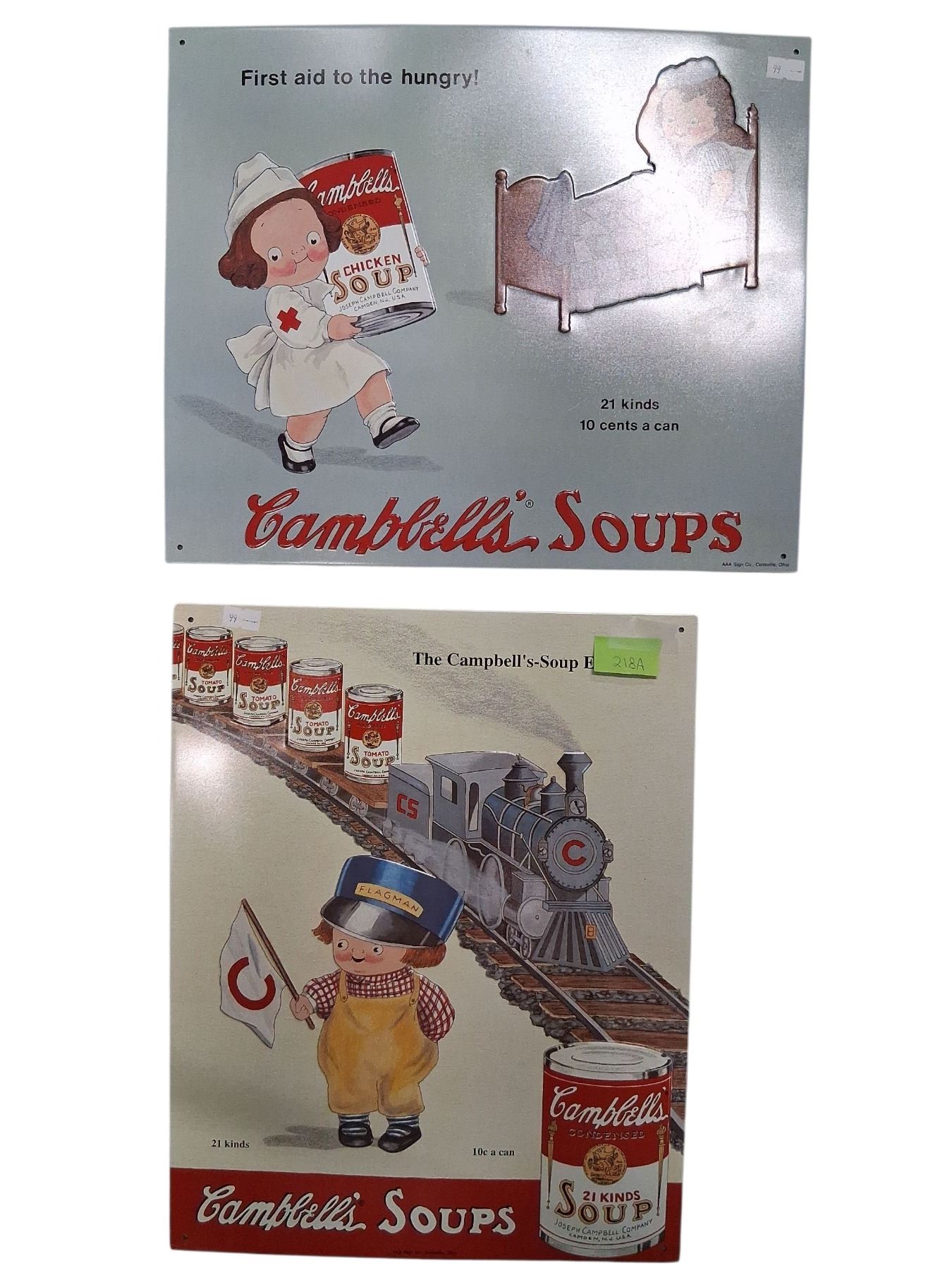 2 Reproduction tin Campbell's Soup signs 13"x12" & 13"x10"