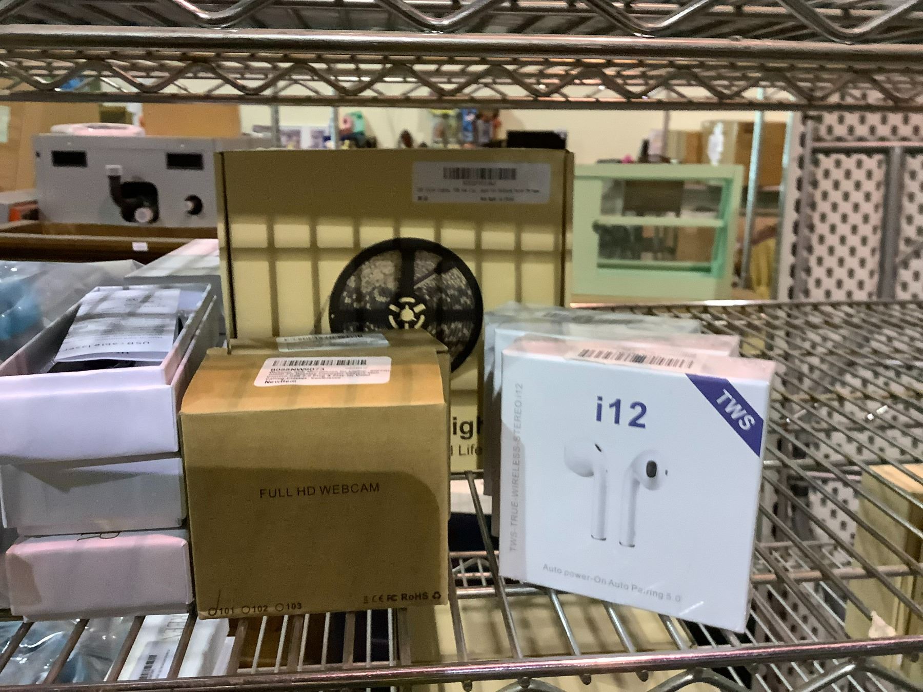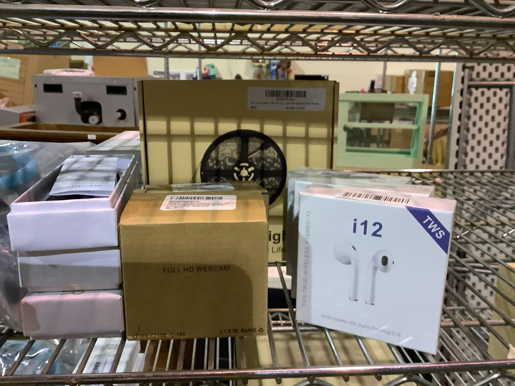 2 SETS OF COLLAPSIBLE COLANDERS, 6 GREEN POINTERS, 2 FULL HD WEBCAMS, 2 LED STRIP LIGHTS & 3 I12 WIRELESS EARBUDS