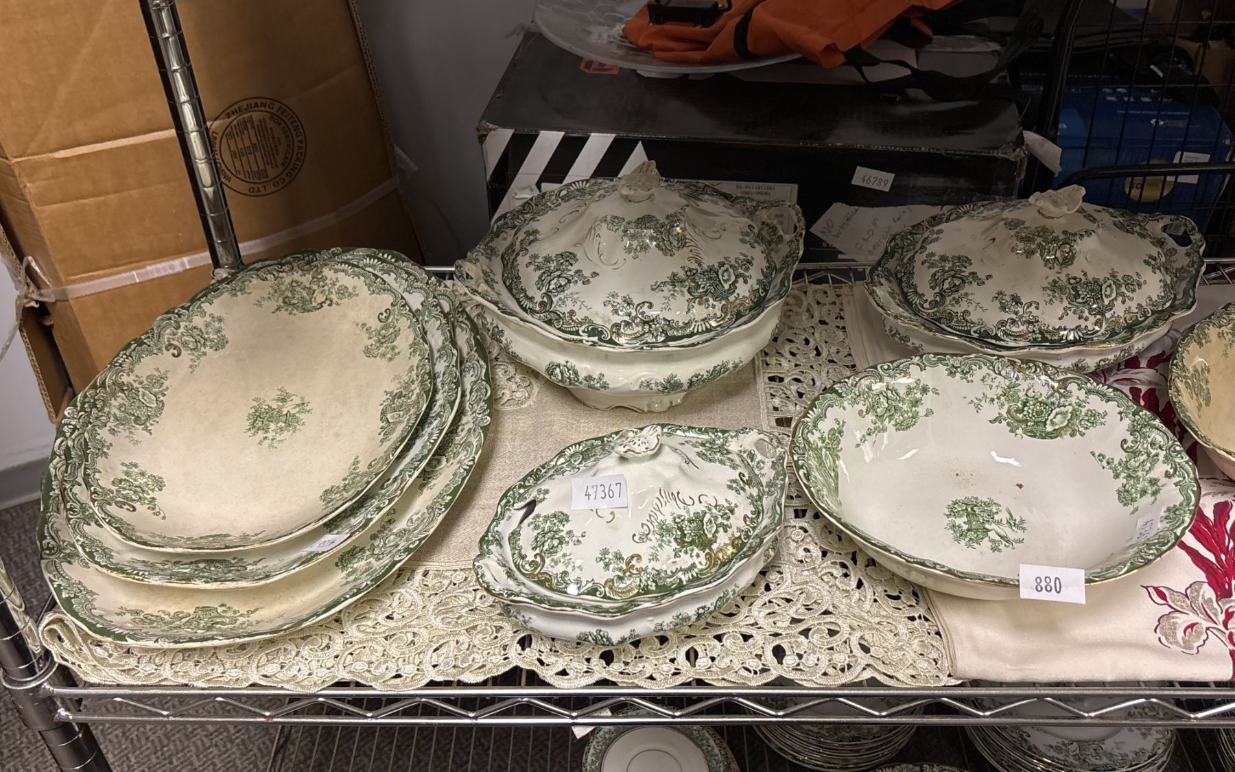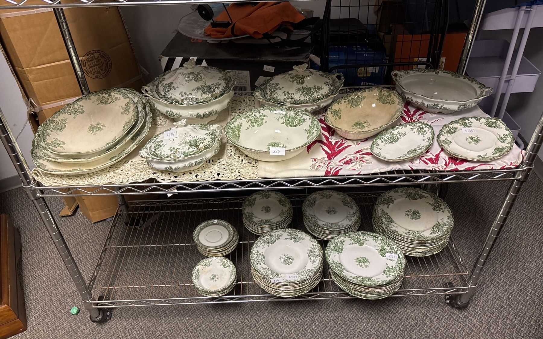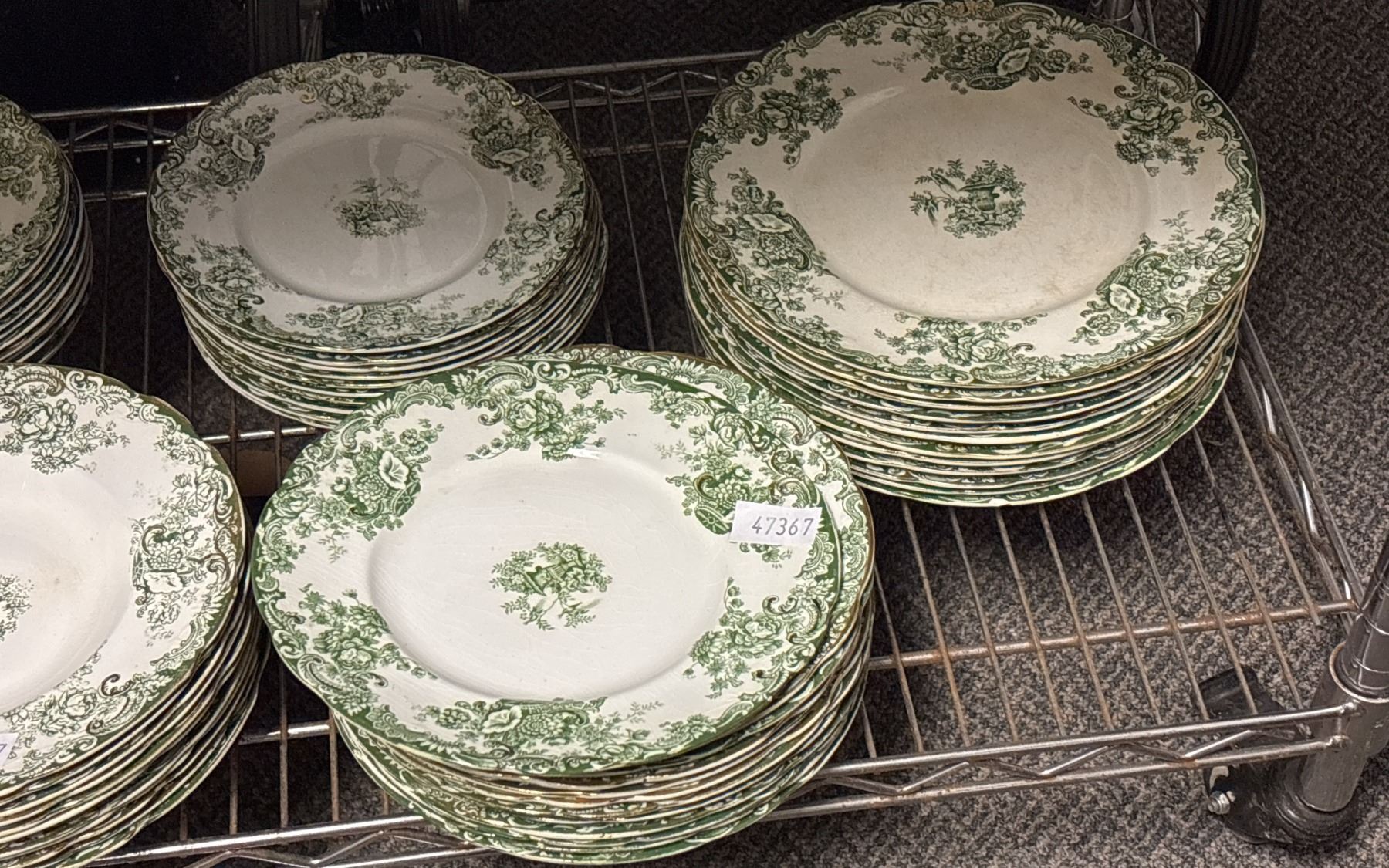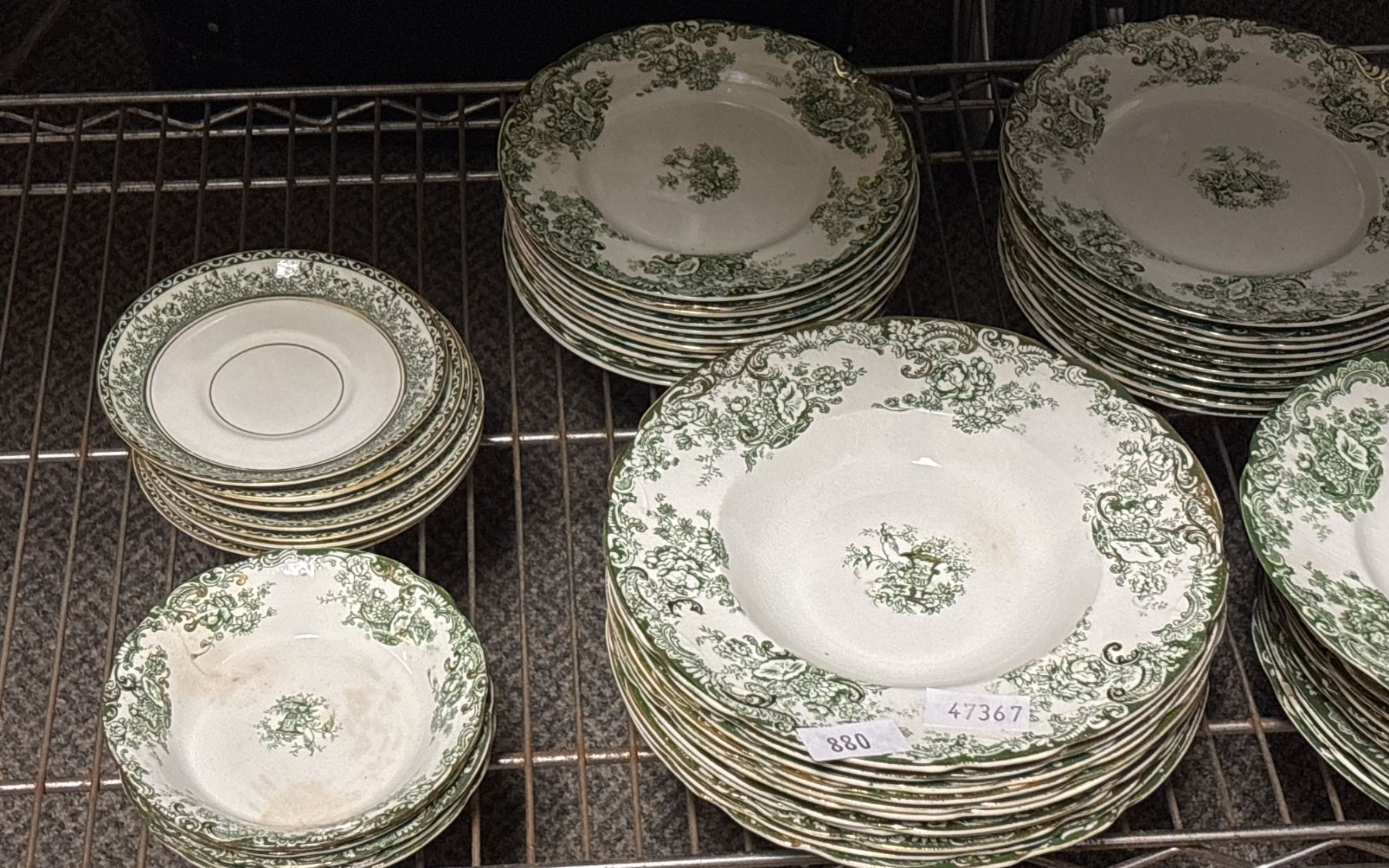 2 SHELVES OF ROYAL STAFFORDSHIRE "ARCADIA" 82-PC DINNERWARE SET
