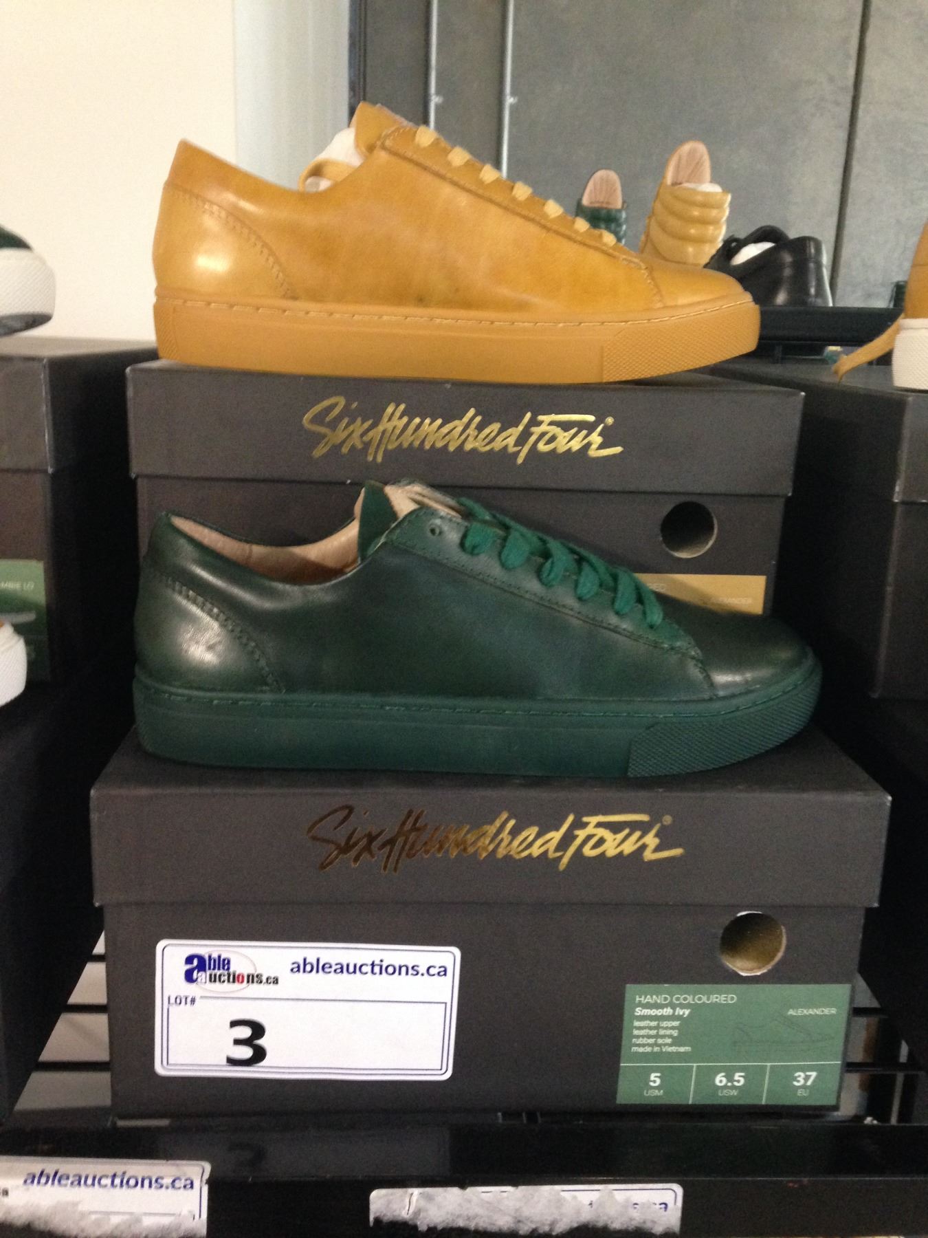 2 SIX HUNDRED FOUR LEATHER UNISEX SHOES SIZE 5 MEN'S IN SMOOTH MIMOSA & SMOOTH IVY $300 RETAIL VALUE EA.