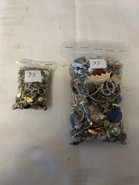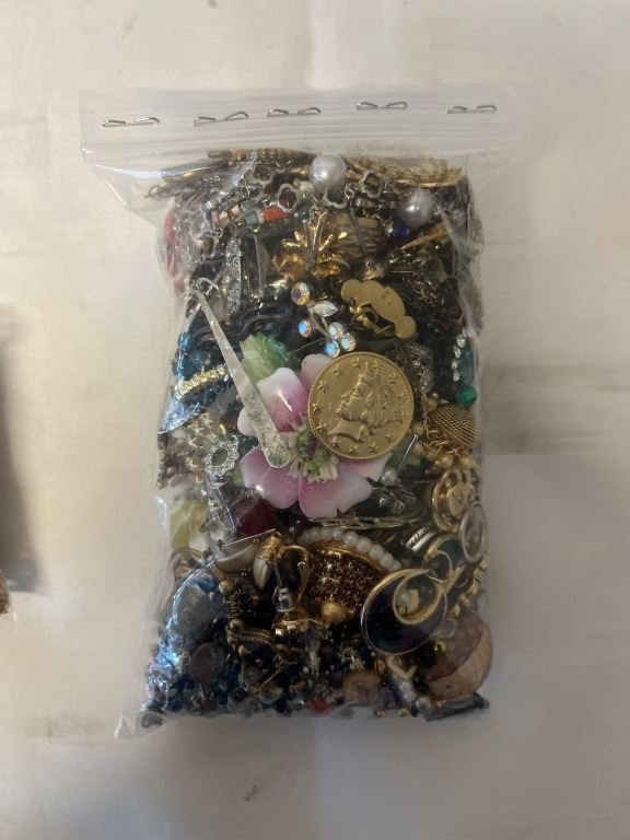 2 SMALL BAGS OF VARIOUS JEWELRY, BROKEN PARTS, BEADS ETC
