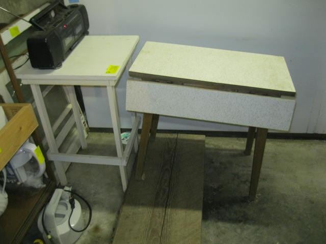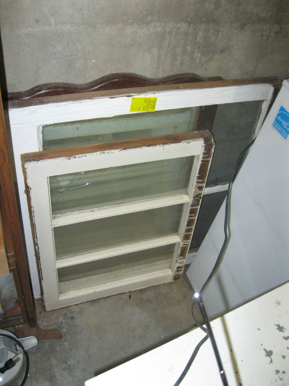 2 SMALL TABLES, WOODEN WINDOWS & WOOD FRAMED MIRROR