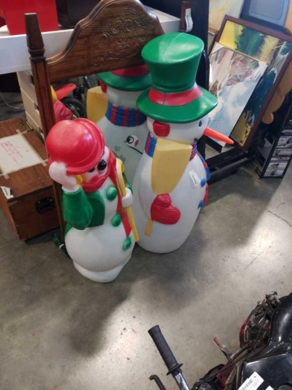 2 SNOWMAN LIGHT UP CHRISTMAS LAWN ORNAMENTS