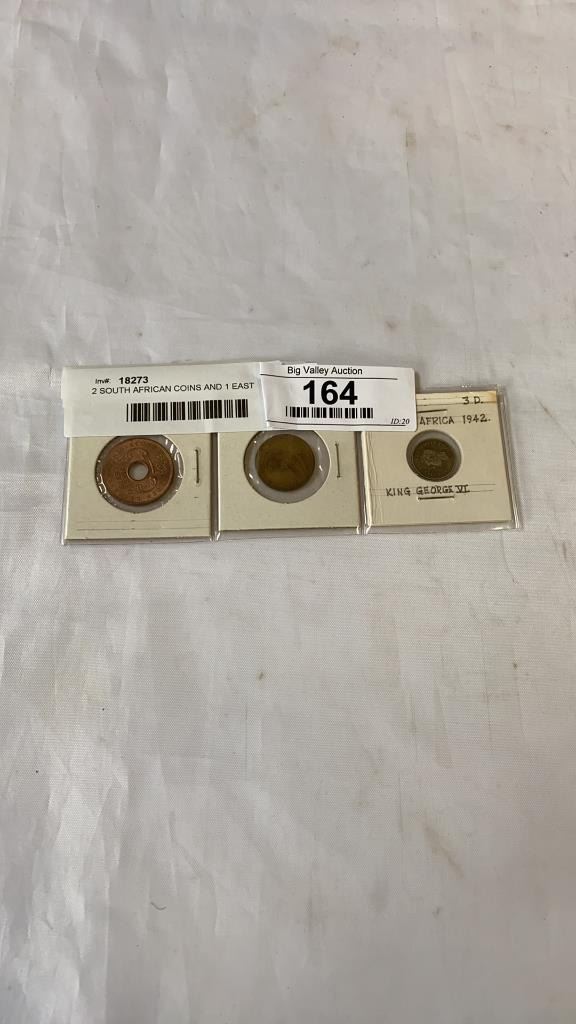 2 SOUTH AFRICAN COINS AND 1 EAST AFRICAN COIN