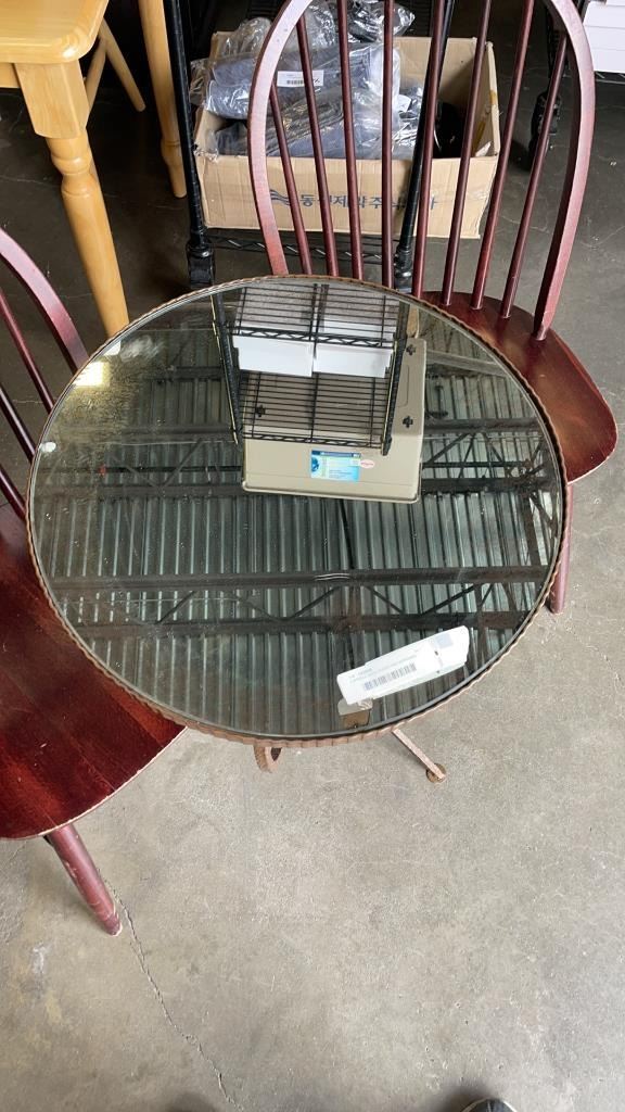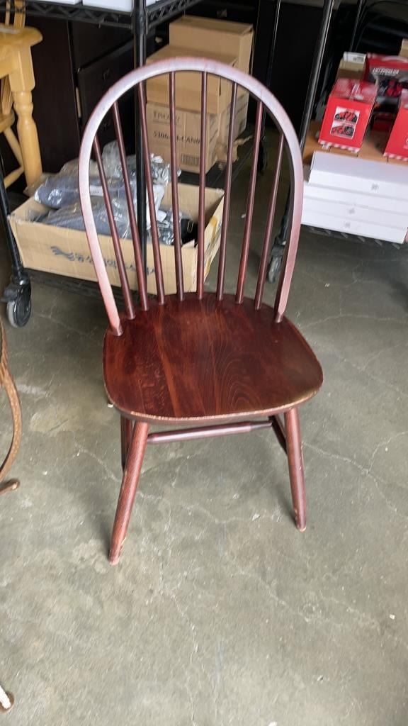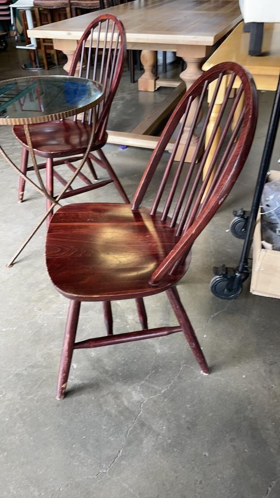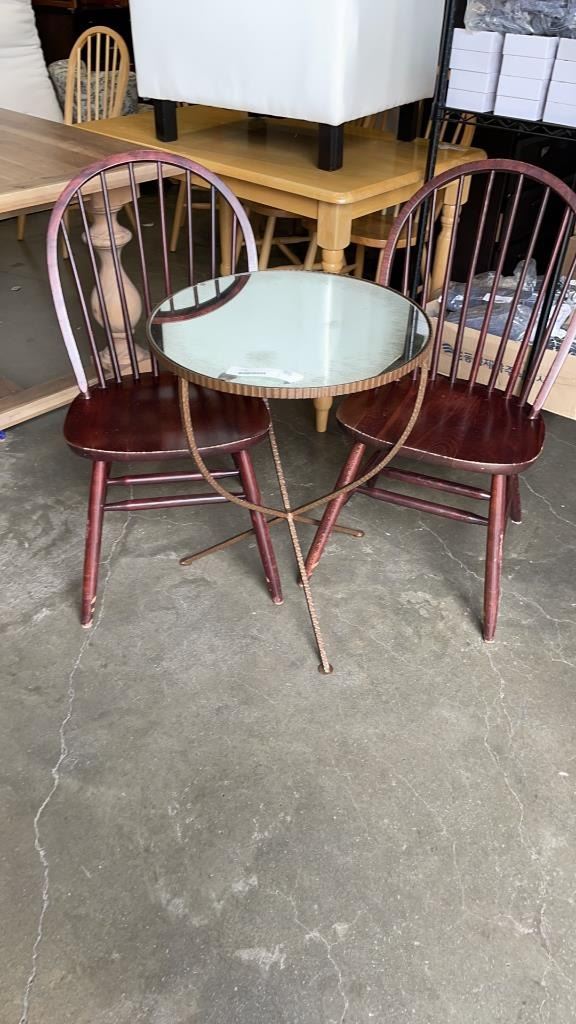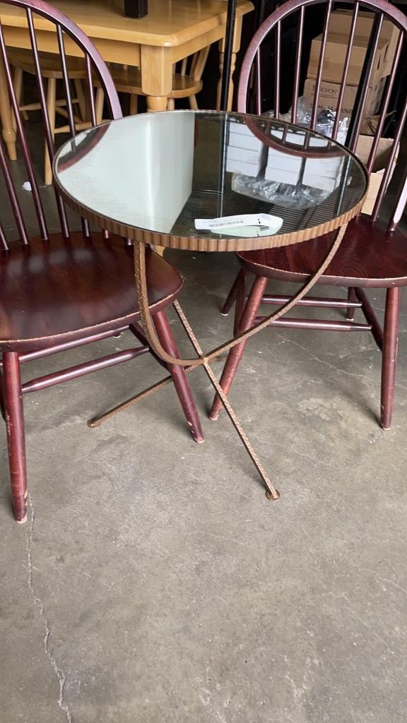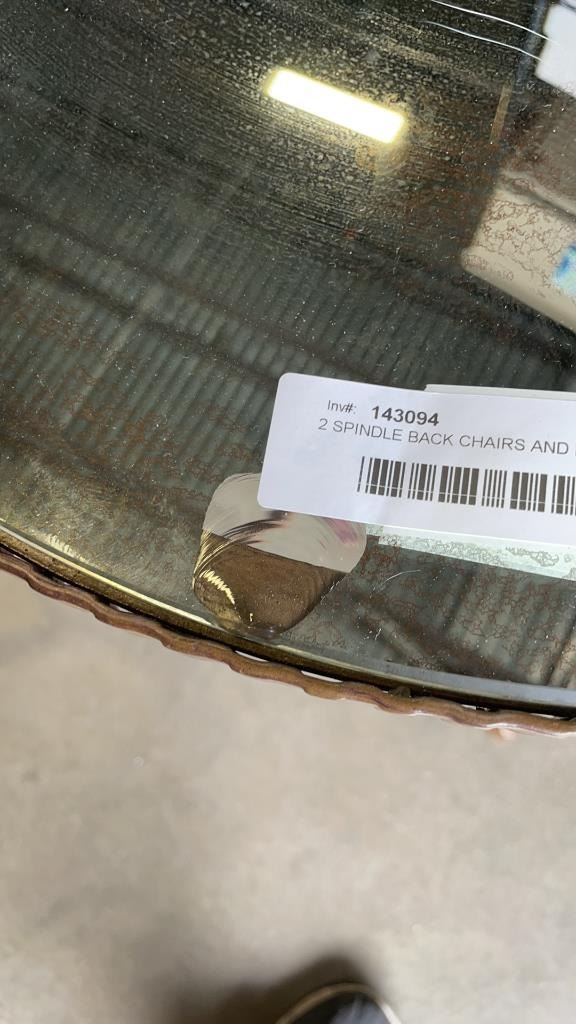 2 SPINDLE BACK CHAIRS AND MIRRORED SIDE TABLE