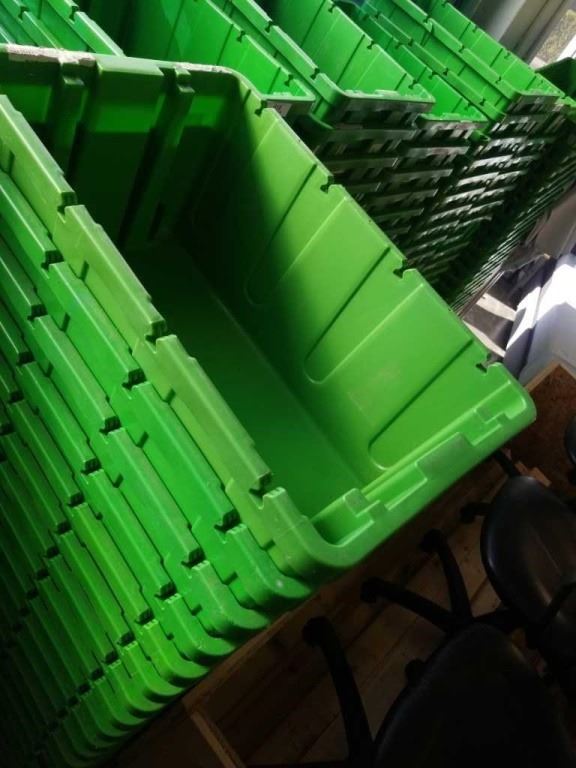 2 STACKS OF GREEN BINS - VARIOUS QUALITY, SOME BROKEN