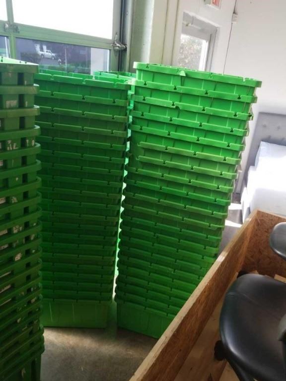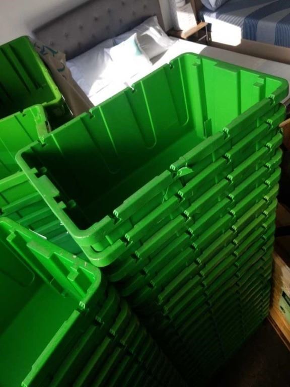 2 STACKS OF GREEN BINS - VARIOUS QUALITY, SOME BROKEN