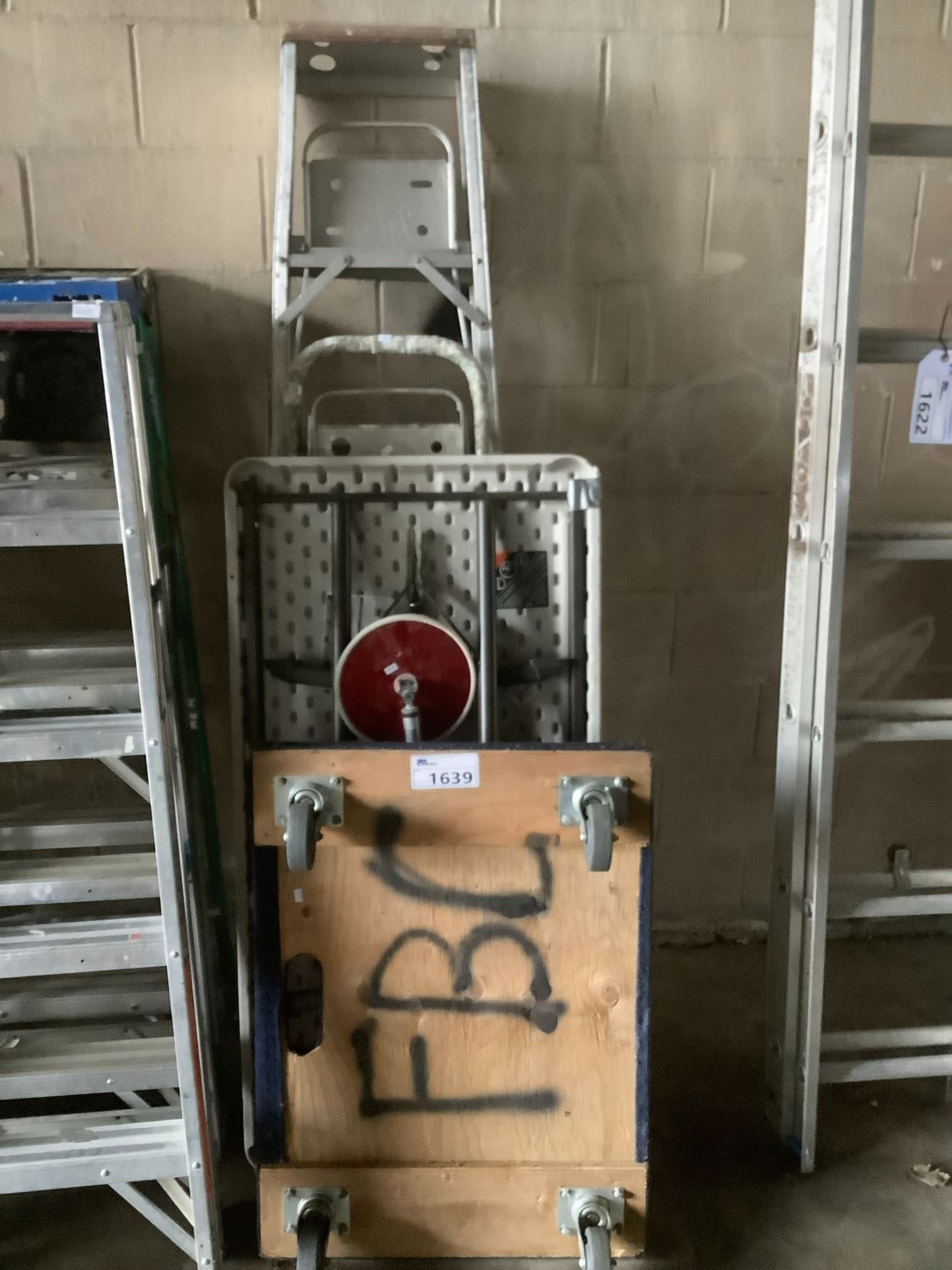 2 STEP LADDERS, FOLDING TABLE, AND 4 WHEEL FURNITURE DOLLY