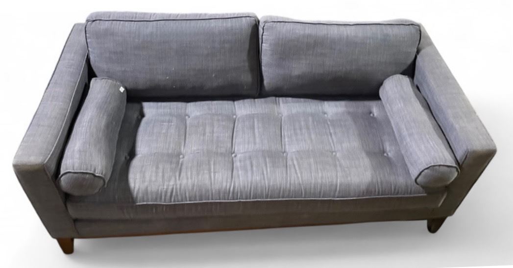 2-Seat 73" Dark Blue Tufted Sofa (Good Condition, some - approx. 73 x 35 x 28")