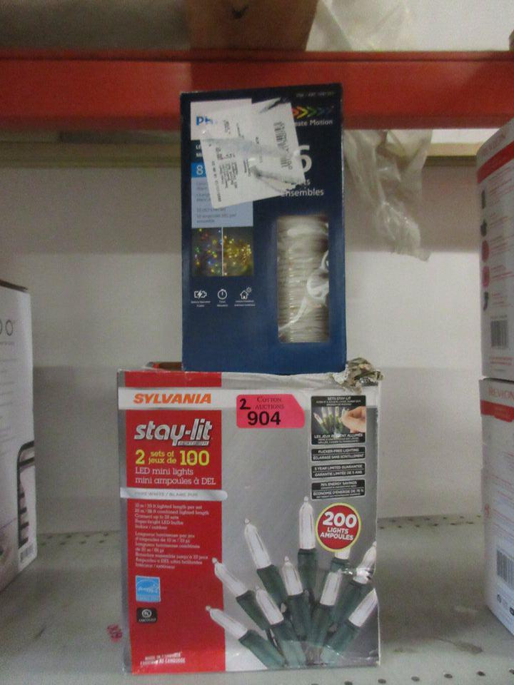 Set of 2 Sylvania clear mini LED light strings and box of Philips micro LED light strings.