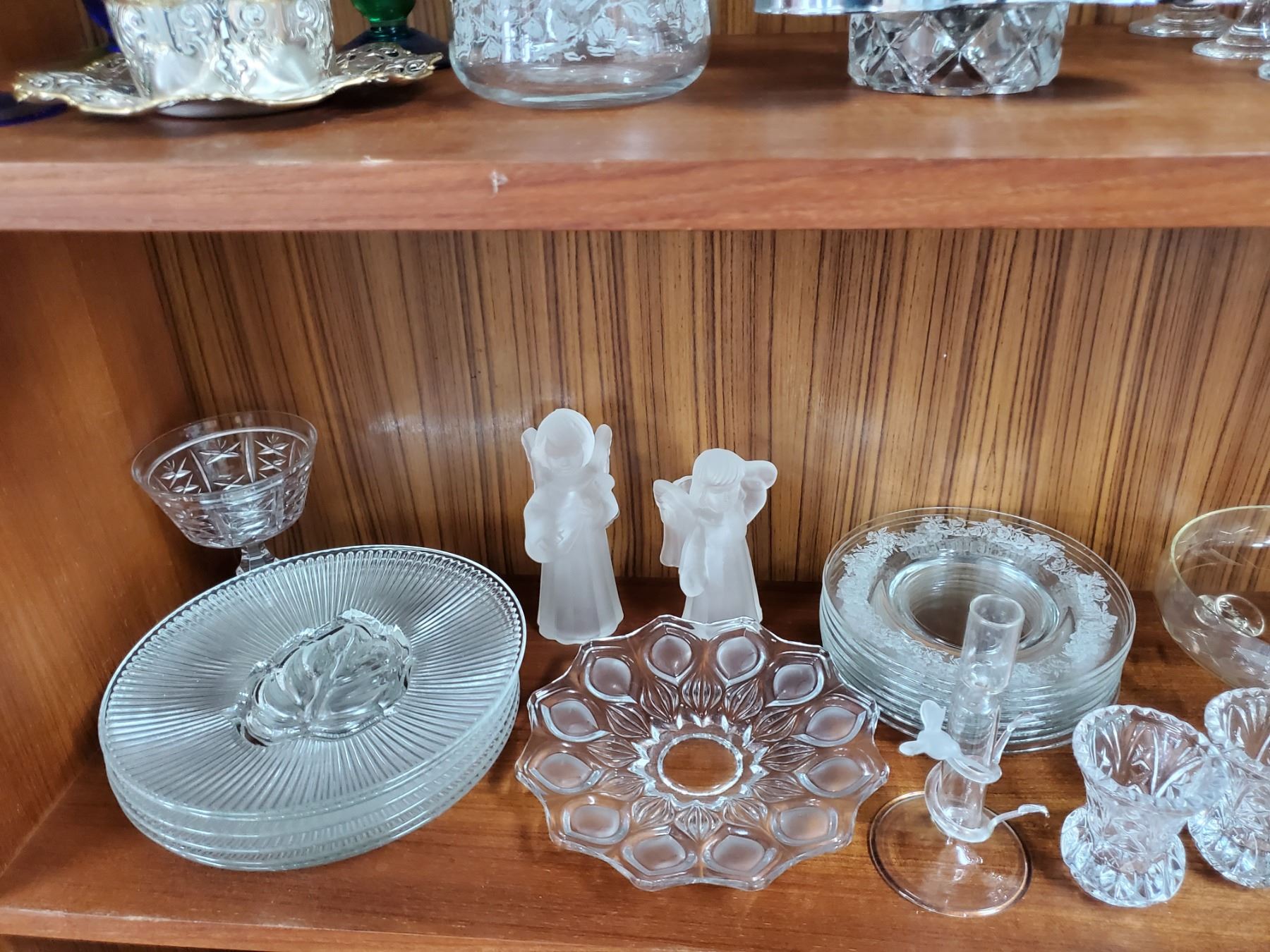 2 Shelves of Orinmental glass serving dishes - Most Items have not been tested - 17% Buyer Fee. Payment Processed through Live Auction World ( Visa or Master Card ) pick up Saturday, or Tuesday