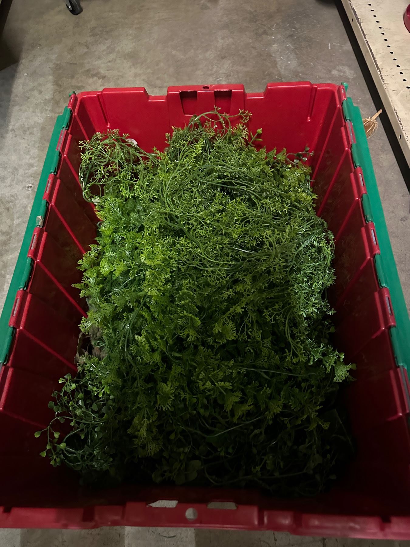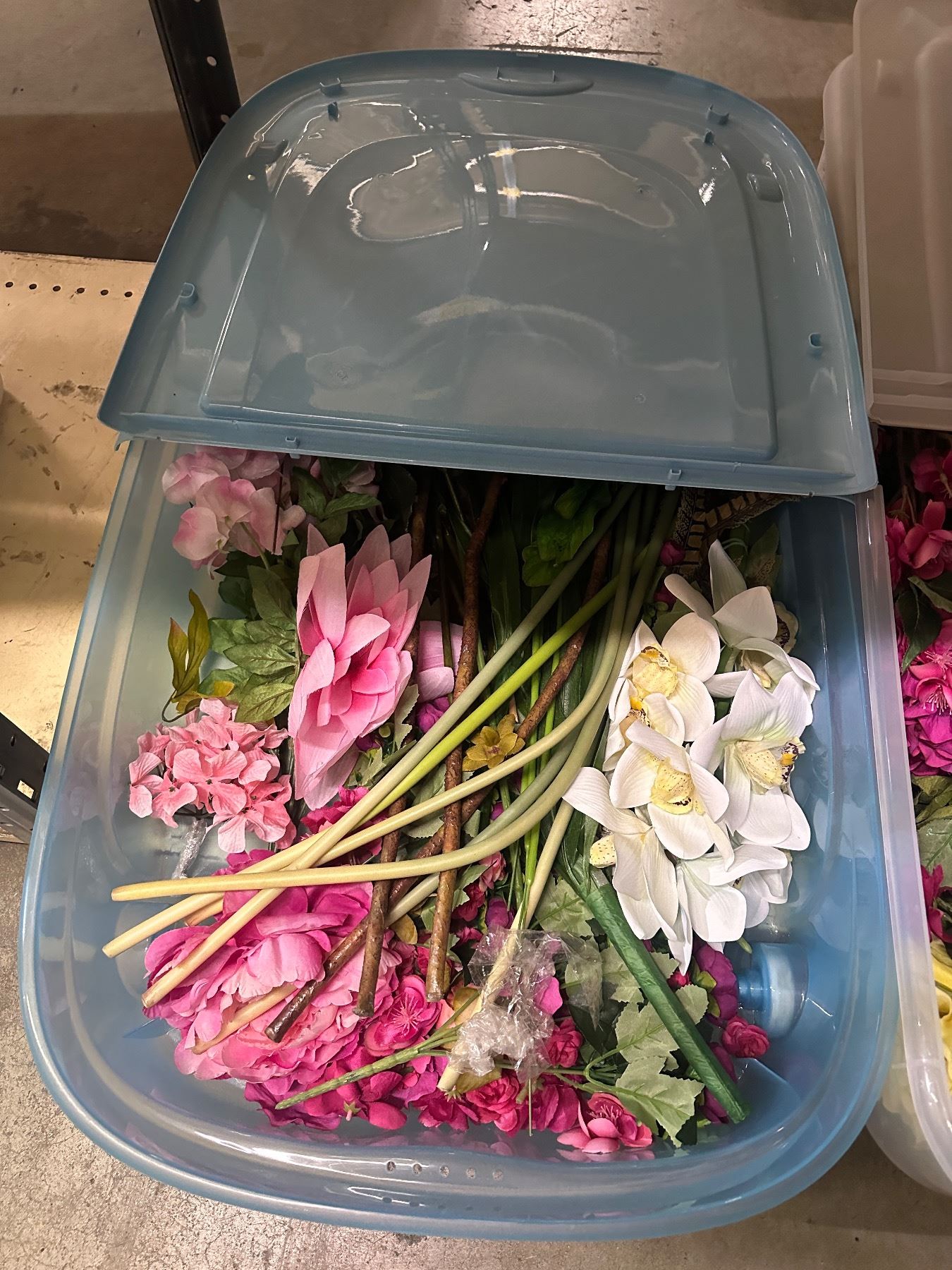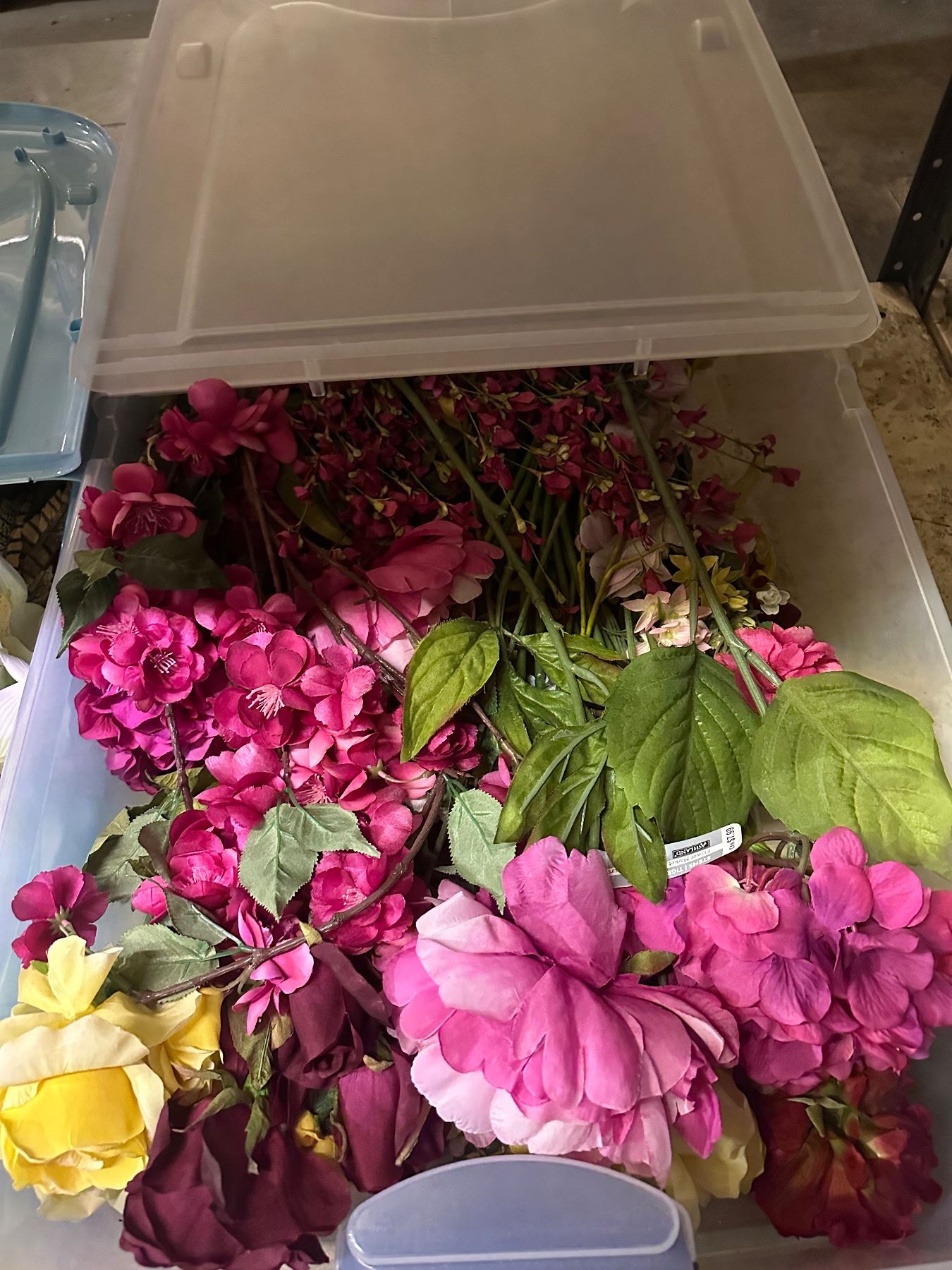 2 Shelves of artificial flowers, shrubs, ivy, etc...