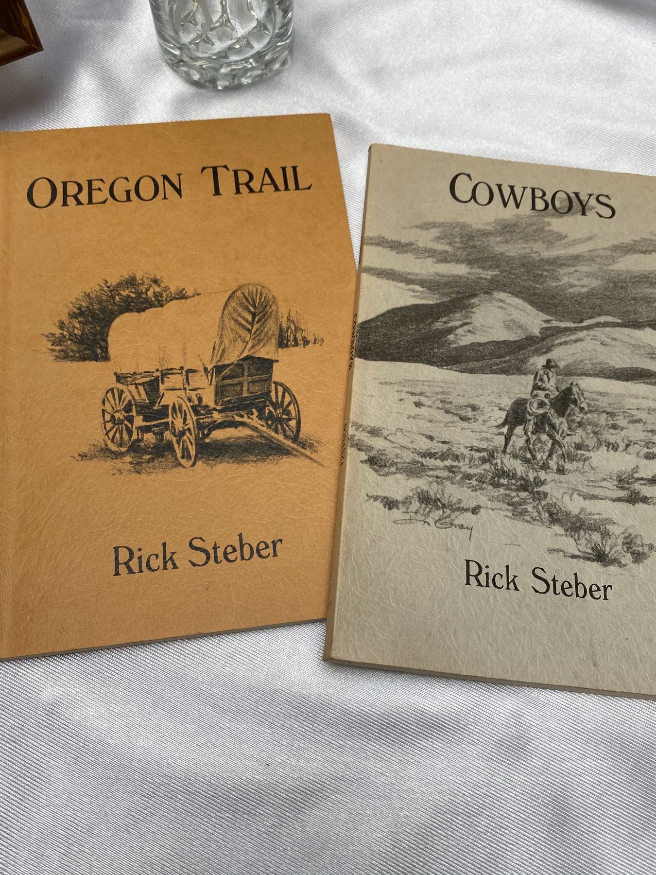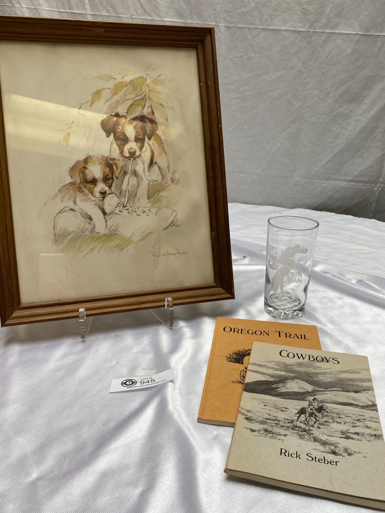 2 Signed Cowboy Books By Rick Stever A Jack Russel Puppies Framed Picture and Cowboy Glass