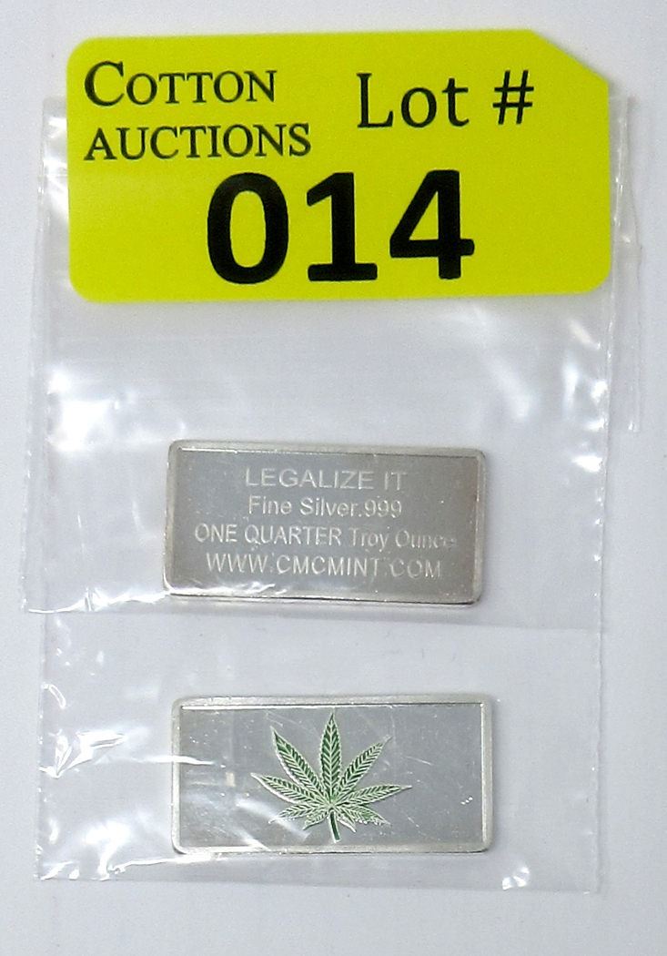 Two 1/4 Oz. .999 fine silver protest bars. Total of 1/2 ounce. Tax exempt.