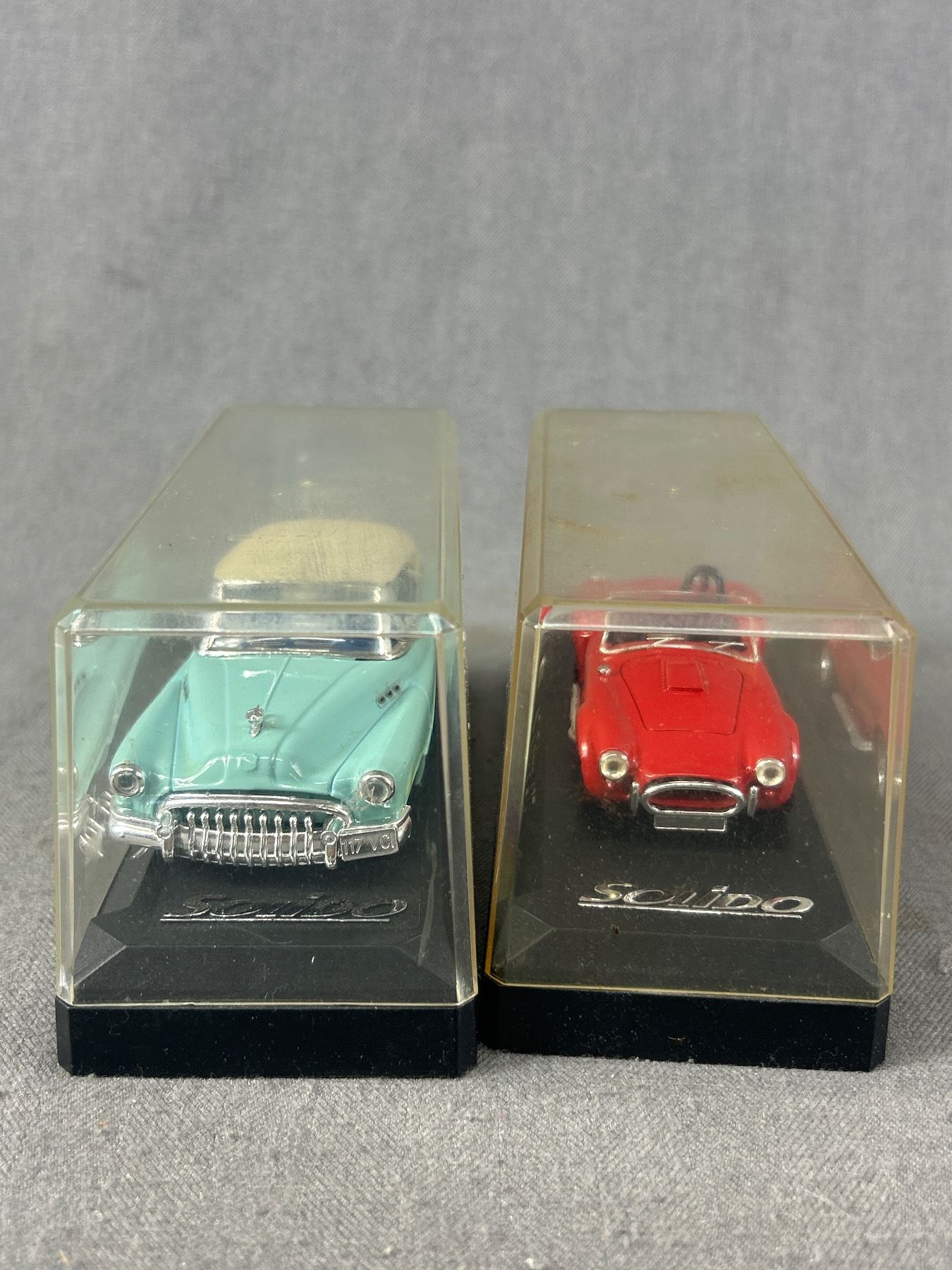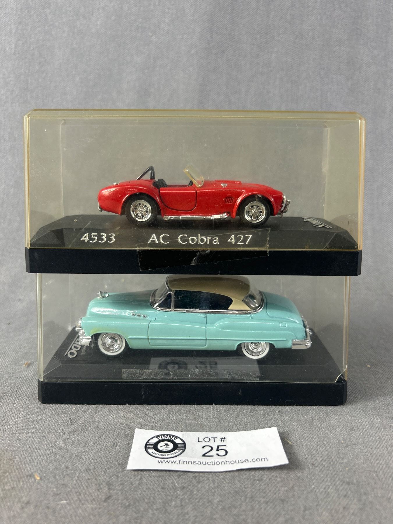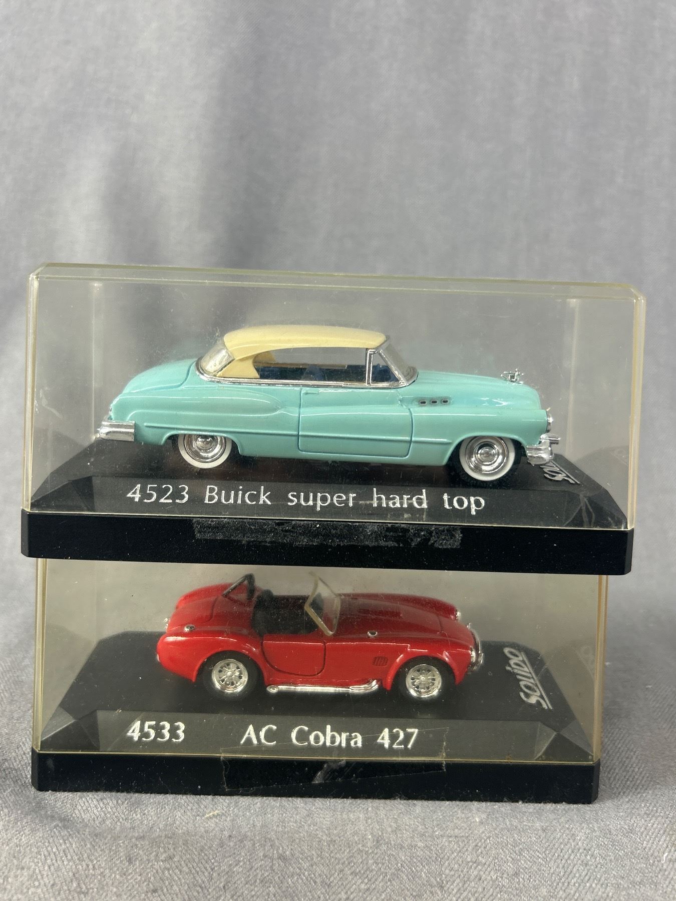 2 Solido Made In France Die Cast Metal Collectibles In Acrylic Case - Buick Super Hard Top & AC Cobra 427