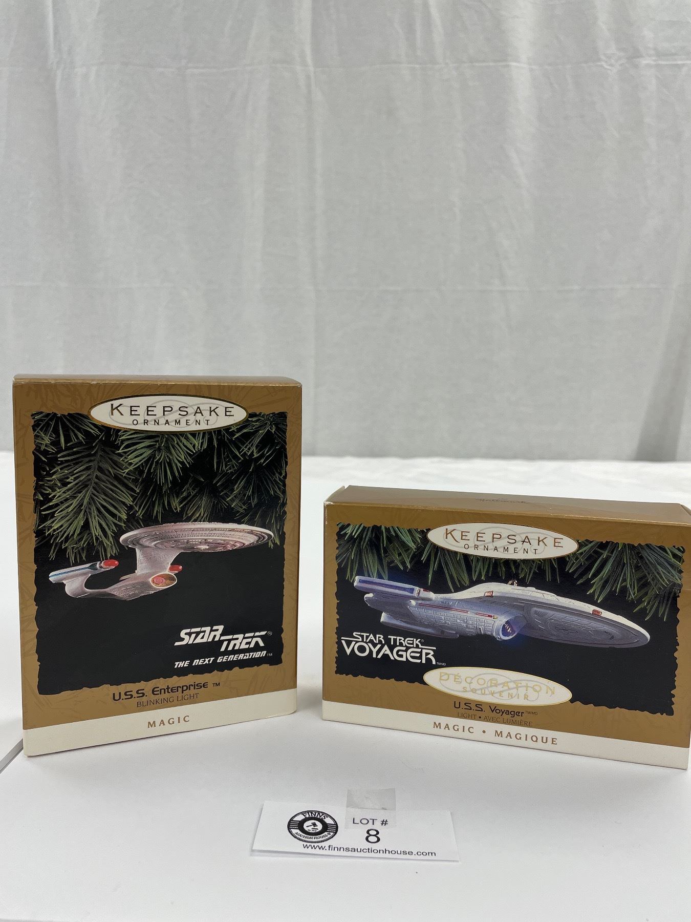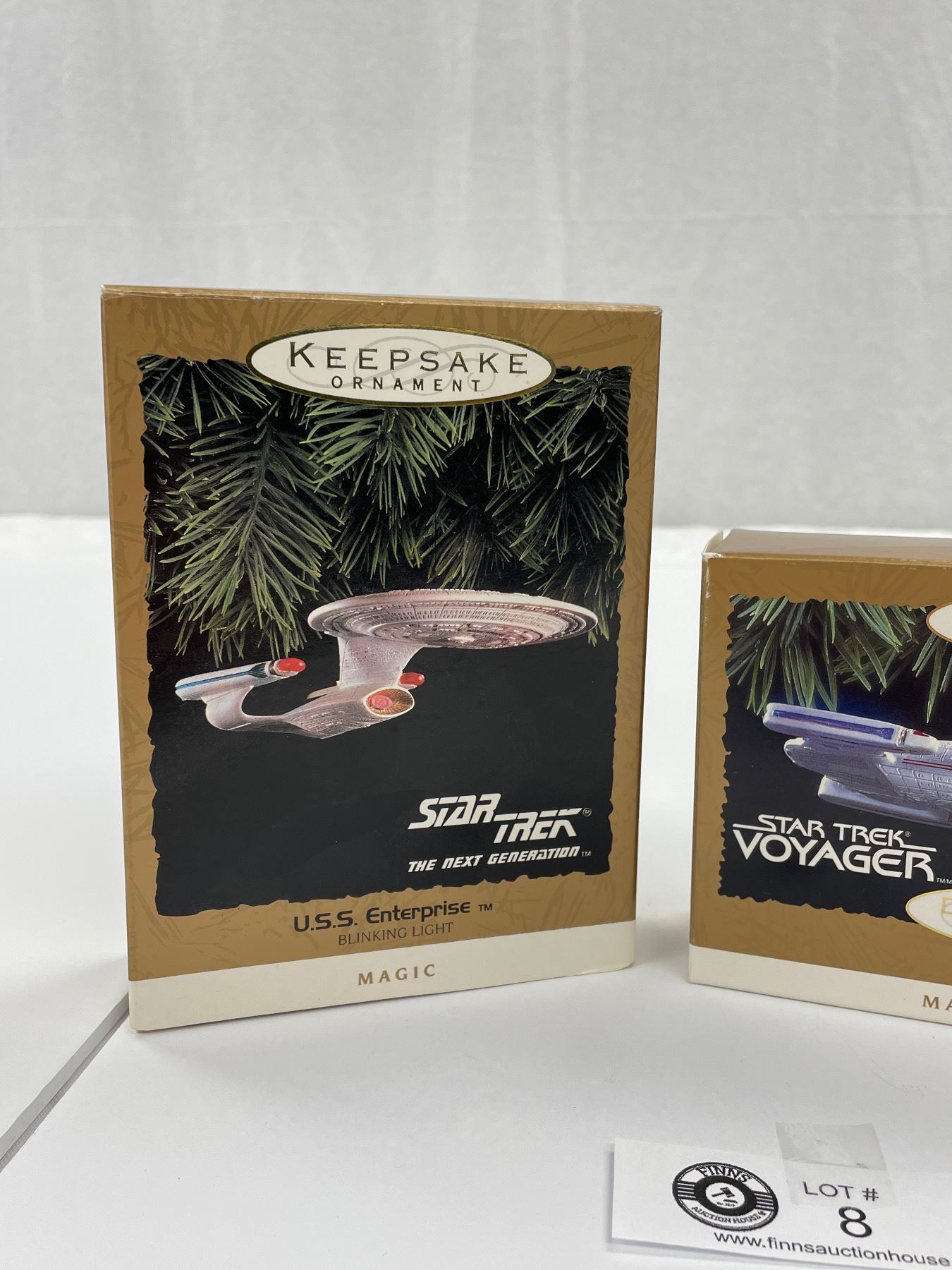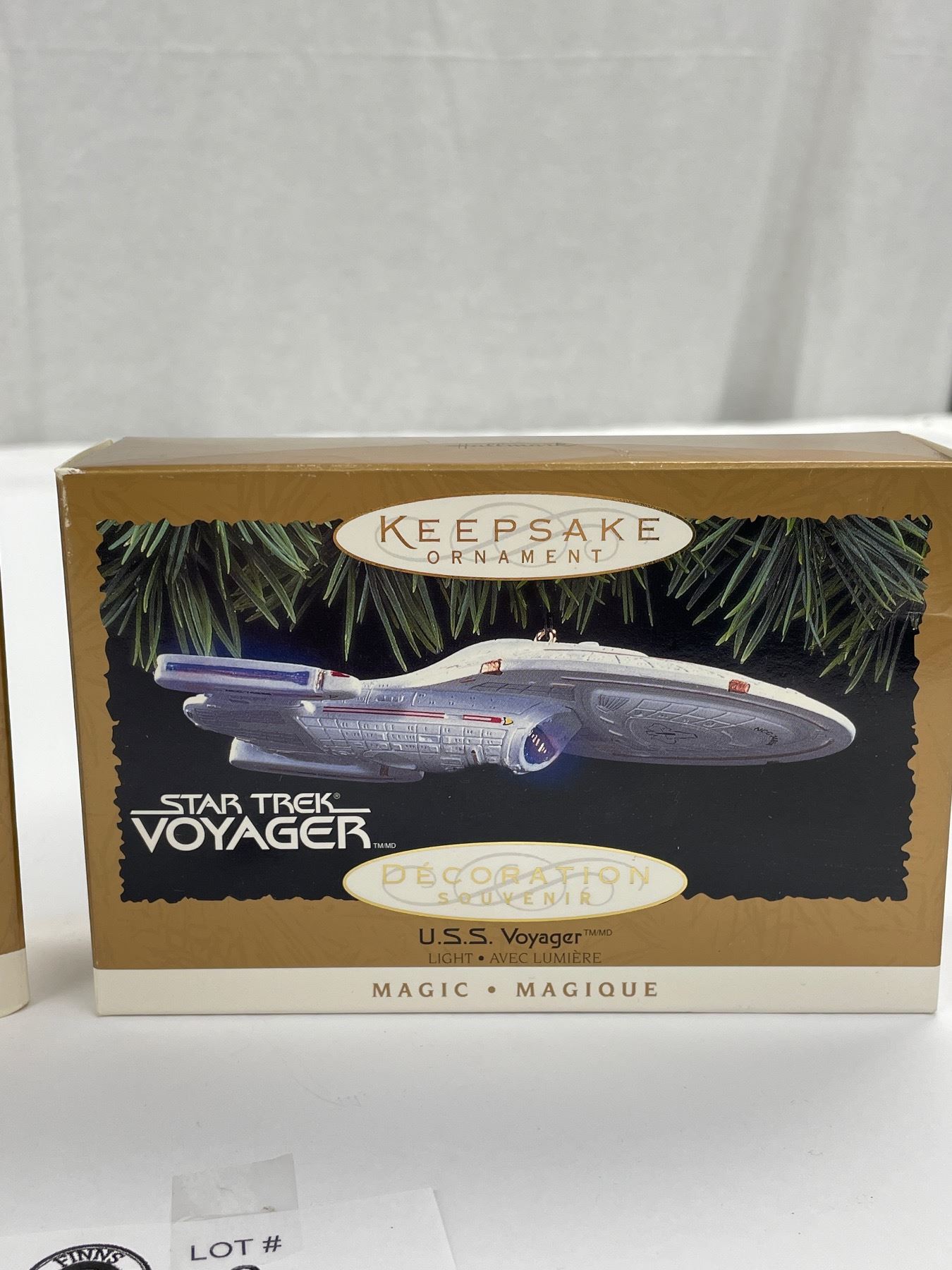 2 Star Trek Hallmark Keepsake Christmas Ornaments USS Enterprise Lights Up