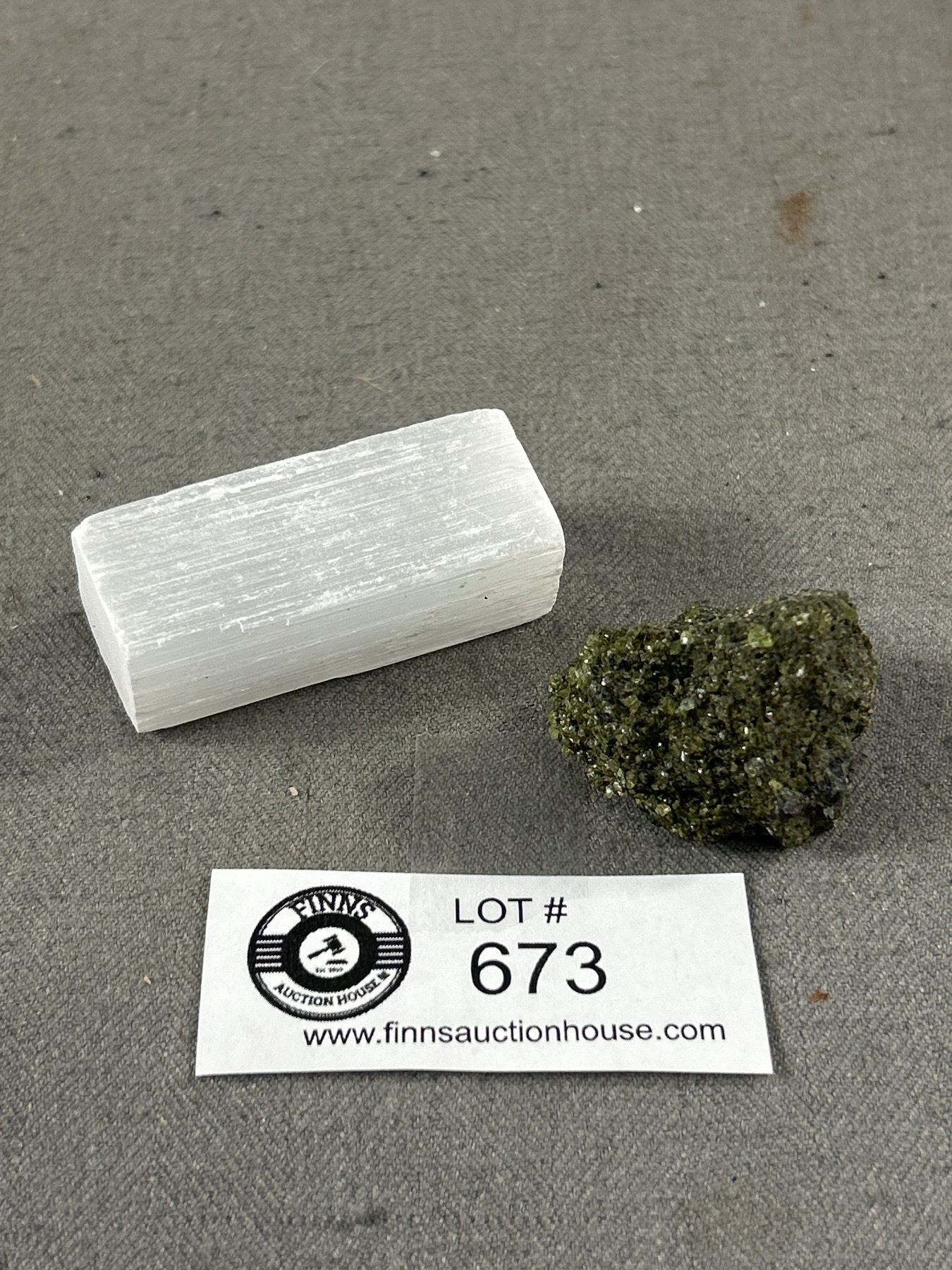 2 Stone Specimens In Display - Epidolite & Selenite. Both Retail $280.00 Each