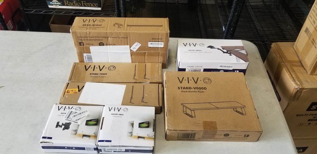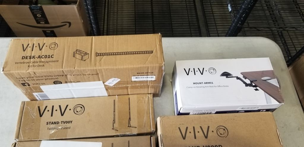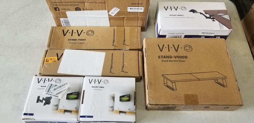 2 TABLETOP TV STANDS, 2 TV/MONITOR WALL MOUNTS, CLAMP ON ARM REST, CORD MANAGEMENT KIT AND MONITOR R