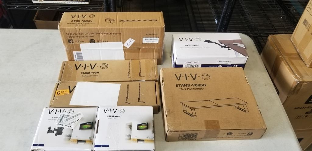 2 TABLETOP TV STANDS, 2 TV/MONITOR WALL MOUNTS, CLAMP ON ARM REST, CORD MANAGEMENT KIT AND MONITOR R