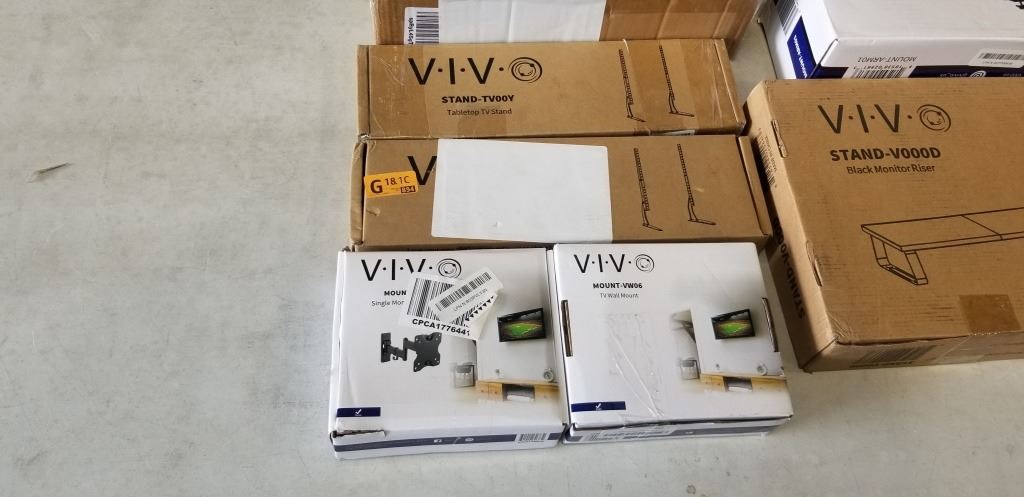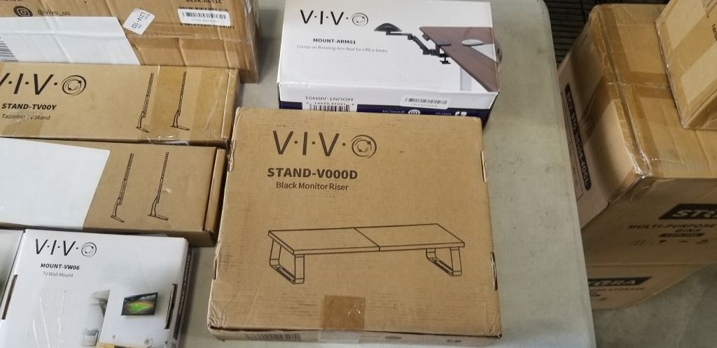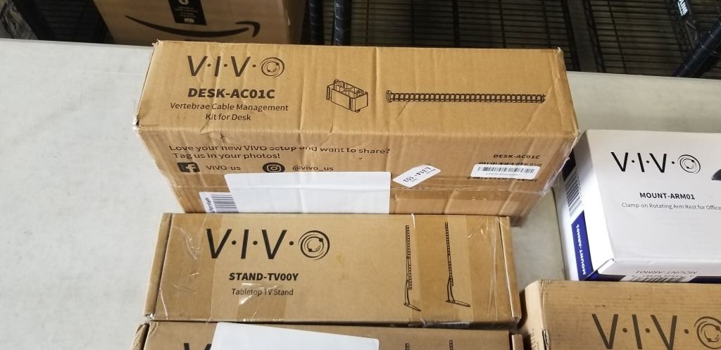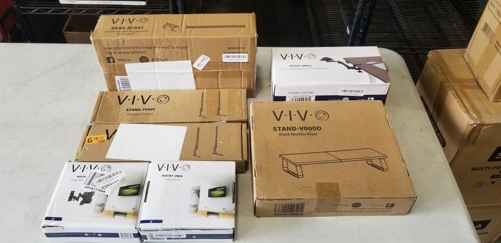 2 TABLETOP TV STANDS, 2 TV/MONITOR WALL MOUNTS, CLAMP ON ARM REST, CORD MANAGEMENT KIT AND MONITOR R